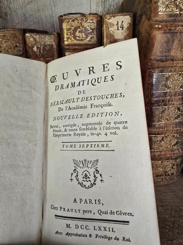 " DRAMATIC WORKS OF NÉRICAULT DESTOUCHES " This elegantly printed book is the second volume of "Dramatic Works of Néricault Destouches" , a prominent 18th-century French playwright and member of the Académie Française. Published in Paris in 1772 by Prault père , it represents a new edition , carefully revised, corrected, and expanded with four additional plays to align with the Royal Press edition. The work received royal approval and privilege , reflecting Destouches' respected status in literary circles and the enduring popularity of his comedies, which masterfully combine moral reflection with lively wit. Table of Contents: Scene from The Amiable Old Man Scene from The Meddler The Vindictive English Scenes , taken from the comedy titled The Tempest Scenes from Proteus Worn-Out Love Prologue from The Impertinent Curious Prologue from The Ambitious Scenes from Thalia and Melpomene , Prologue Summary: This volume presents a diverse collection of scenes and prologues from Destouches’ lesser-known or adapted theatrical pieces. Blending original French comedies with adaptations of English works like Shakespeare’s The Tempest , the volume demonstrates Destouches’ range and engagement with international sources. His works typically focus on human folly, the pitfalls of pride, vanity, and misplaced ambition—frequently resolved through moral or emotional clarity. These plays offer insight into Enlightenment-era theater as both entertainment and social commentary, and this volume in particular seems to highlight prologues and scenes rather than complete plays, suggesting its use as a literary reference or for performance excerpts. Pages: 310 Size: 5.6" x 3.3" x 1" See other $0.99 items