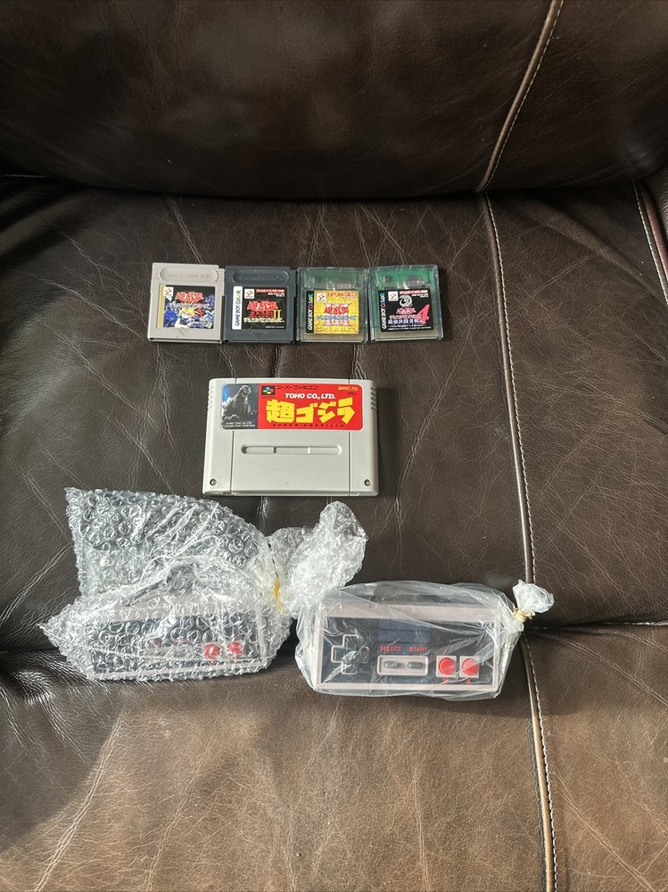 Video Game Lot Bundle includes all of the following. Yu-Gi-Oh collection For Game Boy and Gameboy Color 1. Yu-Gi-Oh! Duel Monsters (GB) 2.Yu-Gi-Oh! Duel Monsters II: Dark Duel Stories (GBC) 3.Yu-Gi-Oh! Duel Monsters III: Sanseisenshin Kourin (GBC 4.Yu-Gi-Oh! Duel Monsters 4: Yugi Deck (GBC) One Super Famicom Game Super Godzilla 2 unused new open None Branded controllers for the original NES Everything has been tested and it’s in working order. Any questions don’t hesitate to just ask.