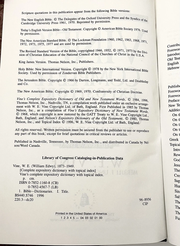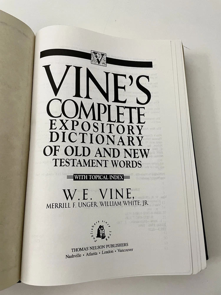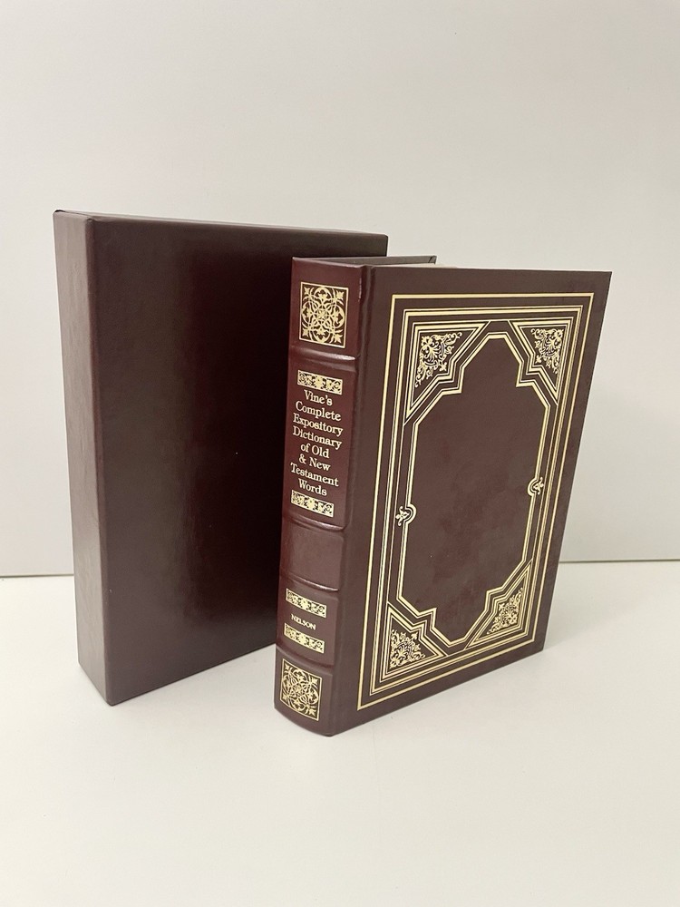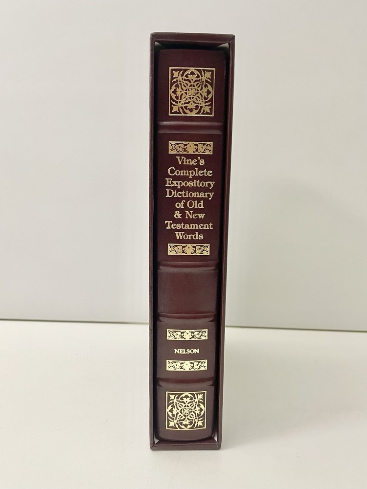 Vine's Complete Expository Dictionary Of Old & New Testament Words Leather Bound Very good used condition with only minor shelf wear on slip case and on cover. Pages are clean and binding is tight. Book pictured is actual copy you will receive.