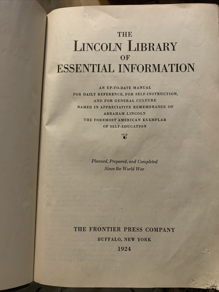 This vintage 1924 original book, "The Lincoln Library of Essential Information," published by Frontier Press in New York, is a valuable reference resource. It is a first edition illustrated paperback written in English, containing essential information on various topics. The book is a part of the reference genre and is a unique piece for collectors interested in vintage publications from the early 20th century. See pics for defects, for a book this old, it’s in very good condition, all pages intact and the only writing is name name and dates inside front cover