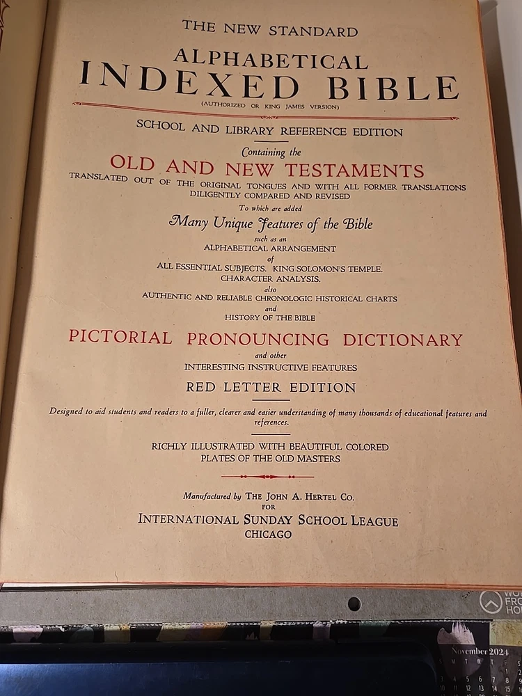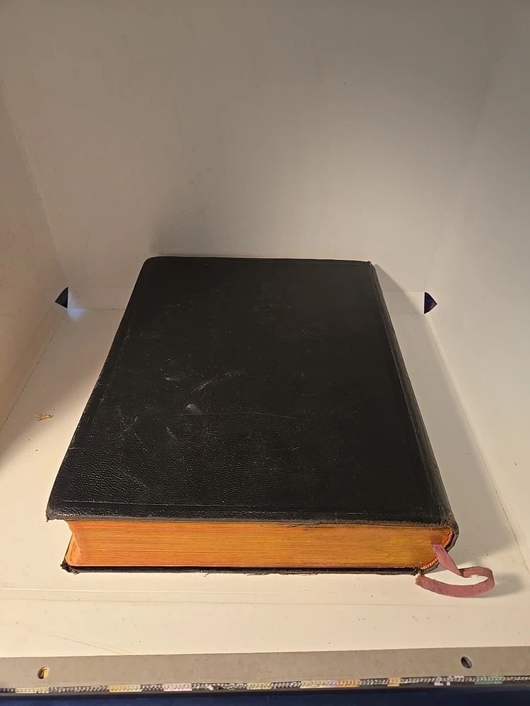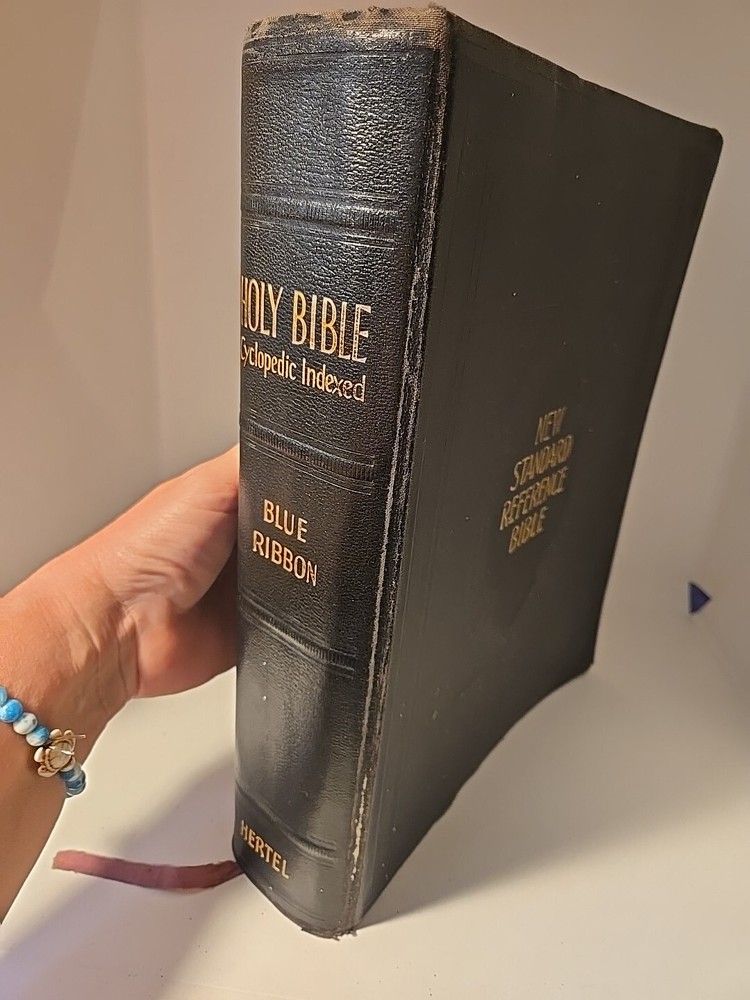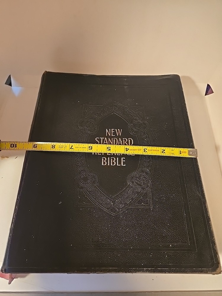 This vintage 1936 Blue Ribbon New Standard Reference Bible-Hertel Giant Coffee Table is a luxurious collector's edition illustrated by various authors. Its leather binding makes it a durable and stylish addition to any library. The Bible has been printed in its original form and is a valuable addition to any collection. The publisher, John A. Hertel Co., has done an excellent job of presenting this Bible in a beautiful and elegant manner. With its special attributes, this Bible is perfect for those who want to delve into Christianity and spirituality. It is an excellent choice for anyone who wants to add a touch of vintage charm to their collection. The Bible is in good condition for age, general wear. On the cover there are tiny white spots. Maybe paint and it can be cleaned but I did not do this. Would rather the buyer so I do not damage. Beautiful book and good condition for age. Very Large. Leather bound. Gold brushed pages.