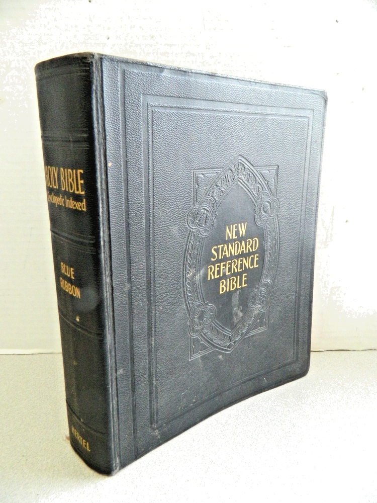 This is a vintage 1936 Blue Ribbon New Standard Reference Bible published by John Hertel. It is a collectible item that falls under the category of Antiquarian & Collectible books. The book is written in English and is an original copy. The binding of the book is leather and it comes in a red letter edition. The book is illustrated and contains references to Christianity and Bibles. It is a great addition to any collection and perfect for those interested in the history of Christianity. The book was authored by multiple writers and is a valuable piece of history. OS4