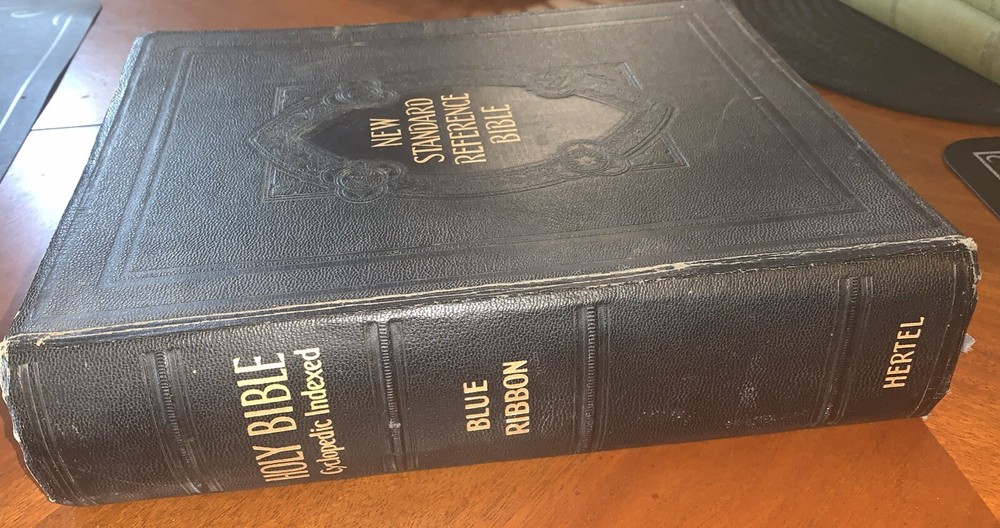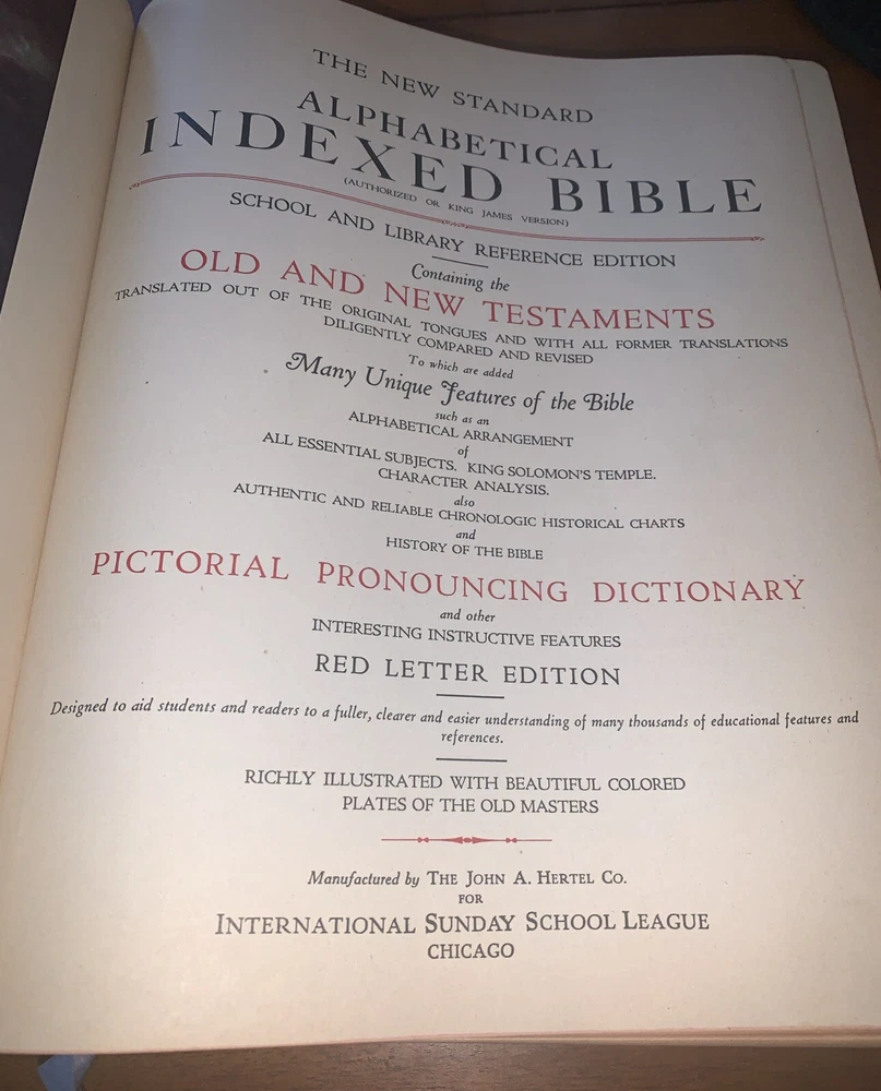 Vintage 1936 Blue Ribbon New Standard Reference Bible-Hertel Red Letter Edition Preowned but good condition overall with minimal leather cover wear and previous owners documentation. We will ship for a flat rate of $9.00. Thanks for viewing and be sure to visit our eBay store!