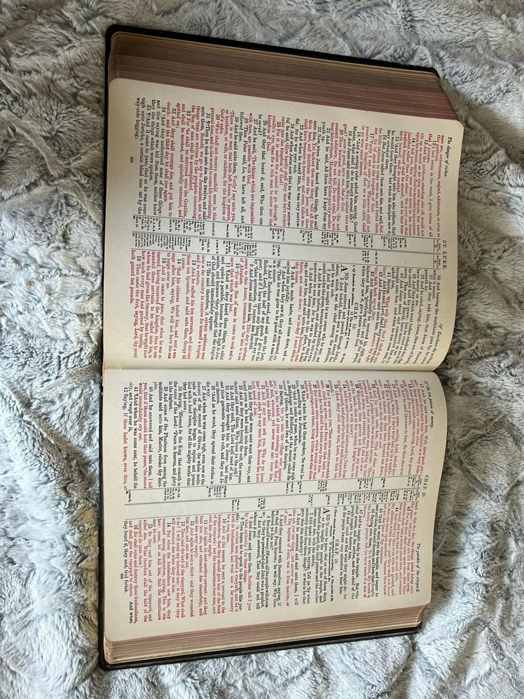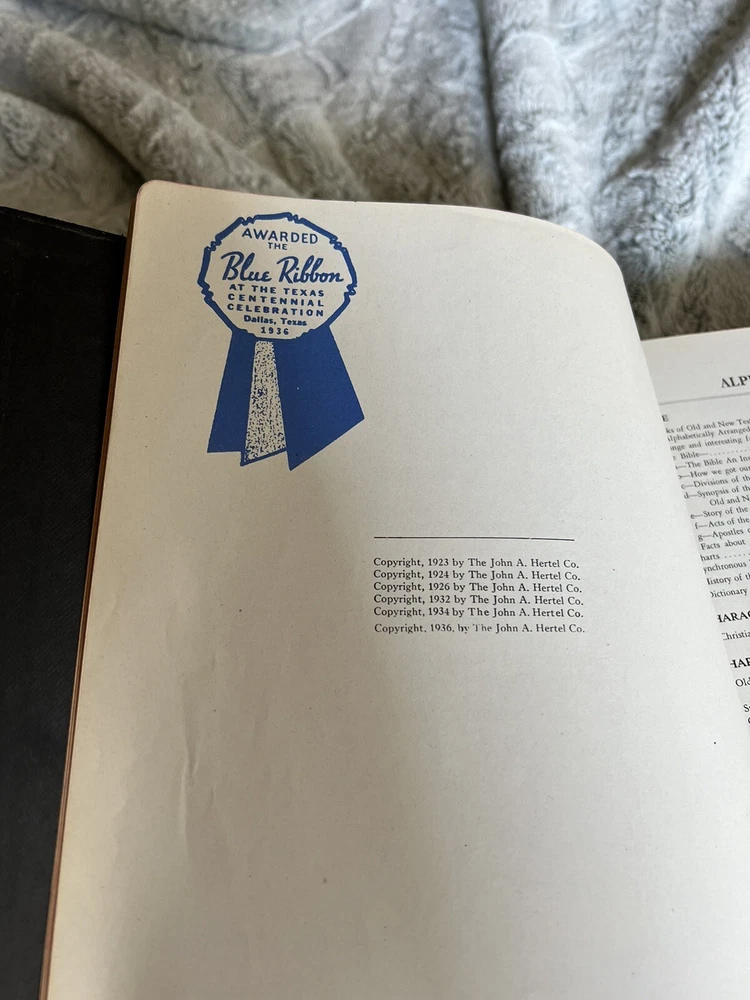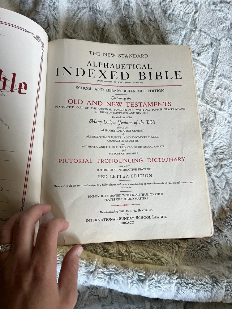 This vintage 1936 Blue Ribbon New Standard Reference Bible-Hertel Red Letter Edition is a rare find for collectors and believers alike. Its leather binding, written in English, contains special attributes that make it a unique addition to any collection. The Bible is illustrated and covers topics related to Christianity, making it a great reference guide for those seeking spiritual growth. The Bible's subject matter is centered around reference materials, making it an excellent choice for those who are looking to expand their knowledge. This antique Bible is a must-have for anyone who appreciates the beauty and historical significance of vintage books. Its North American region of origin adds to its collectible value. Get your hands on this amazing piece of literature today!