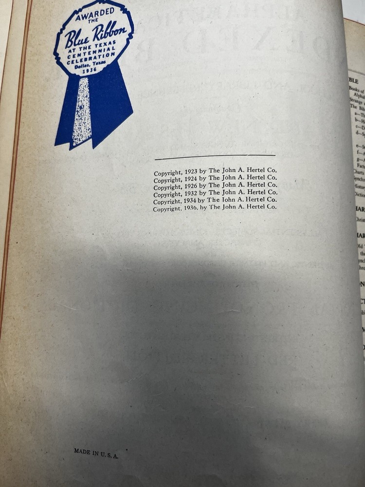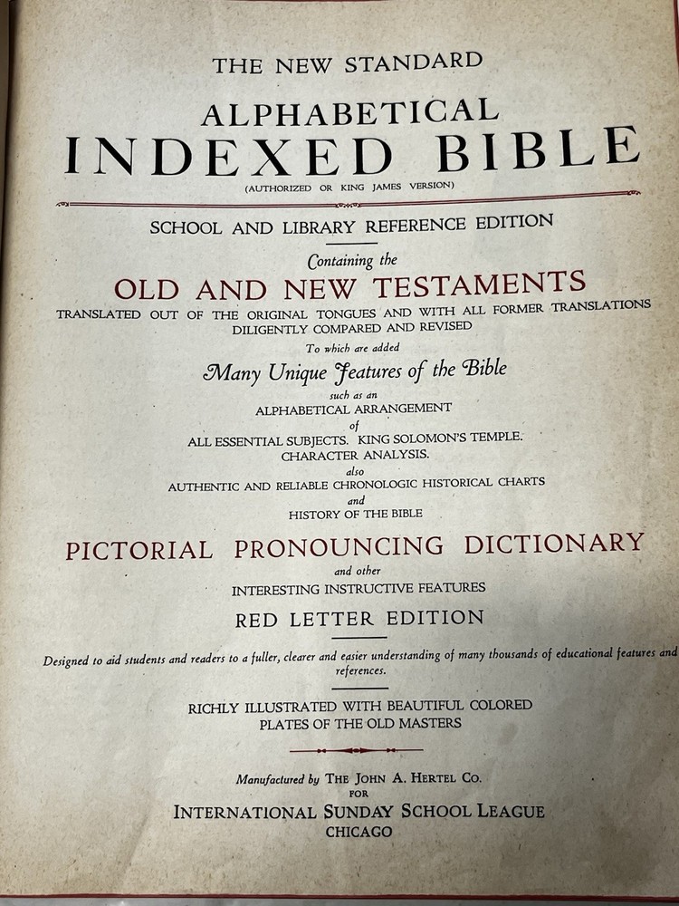 1936 HOLY BIBLE NEW STANDARD REFERENCE INDEXED HERTEL BLUE RIBBON 9-1/4 X 11-1/2 This is a rare and valuable vintage Bible from 1936, published by John A. Hertel Co. It is a luxury and collector's edition with beautiful illustrations and a leather binding. The Bible is an original copy and is in excellent condition, making it a wonderful addition to any collection. The subject of this Bible is Christianity and it is categorized under Books & Magazines and Antiquarian & Collectible. The Bible is written in English and is written by various authors.