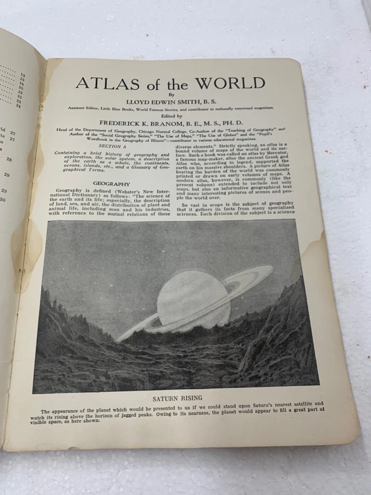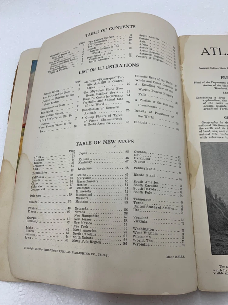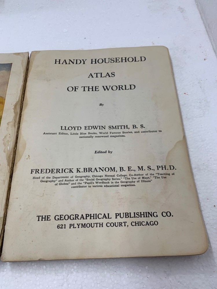 This vintage edition Handy Household Atlas Of The World was published in 1936 by The Geographical Publishing Co. It features leather binding and is written in English. Illustrated with maps and charts, it is an original and authentic reference for collectors of antique books. The author, Lloyd Edwin Smith, presents comprehensive information on atlases, including topics such as the country/region of manufacture and year printed. This rare gem is a must-have addition to any collection of antiquarian and collectible books and magazines.