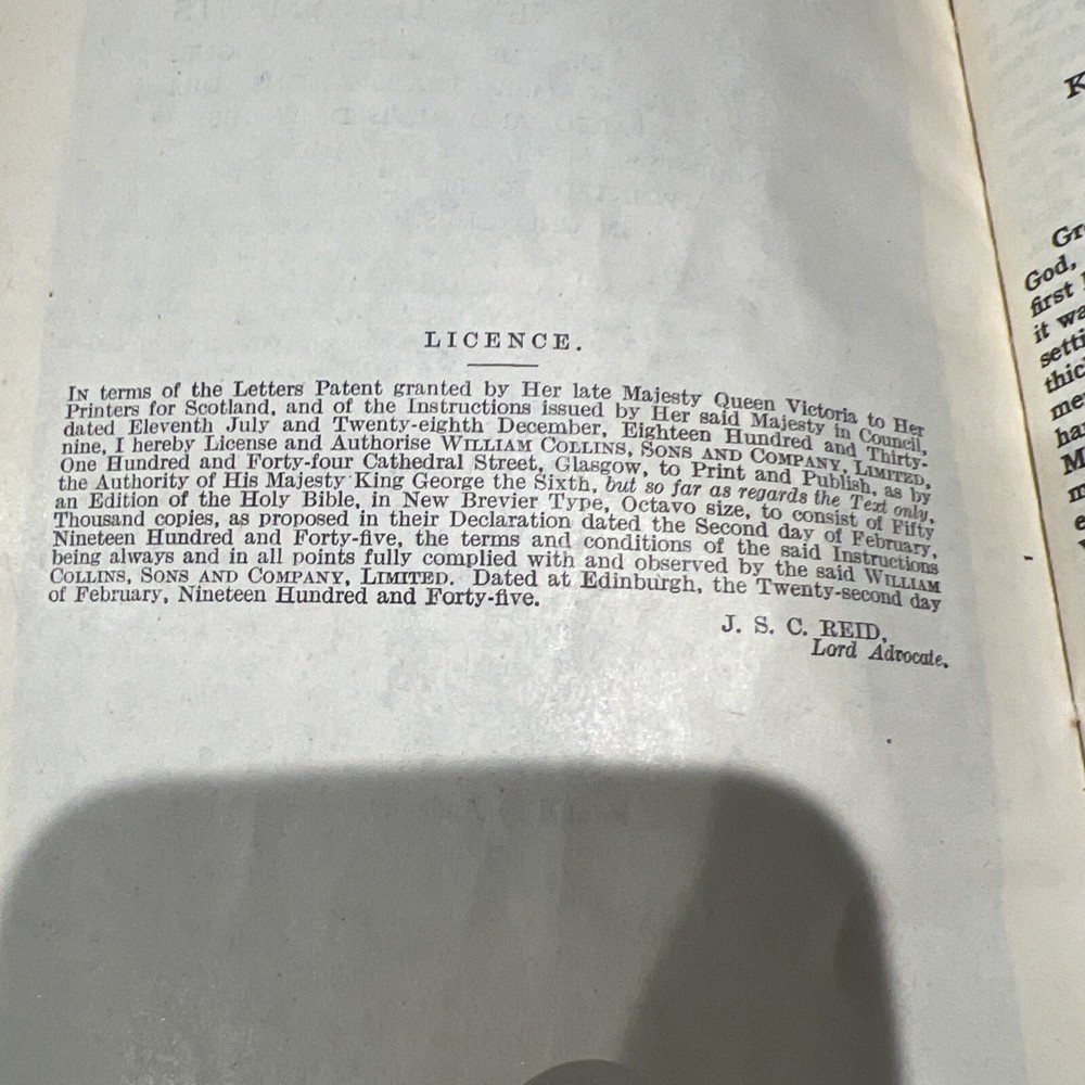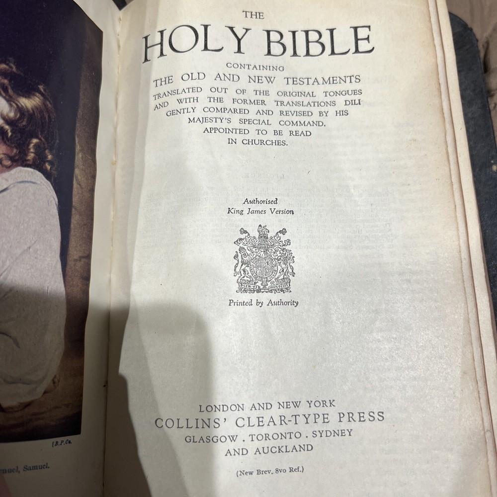 This vintage 1945 Holy Bible Concordance is a limited edition leather bound book published by William Collins Sons And Company Limited. The Bible is written in English and includes both the New and Old Testaments, with a publication year of 1945. The book is not signed nor is an ex libris. It is a nonfiction narrative type book in the religious & spiritual and history genre, with topics revolving around reference and the Bible. This Bible is a great addition for collectors as it is vintage and from the 1940s era. The book is in very good condition and is perfect for those who are looking for a rare literary piece to add to their collection.
