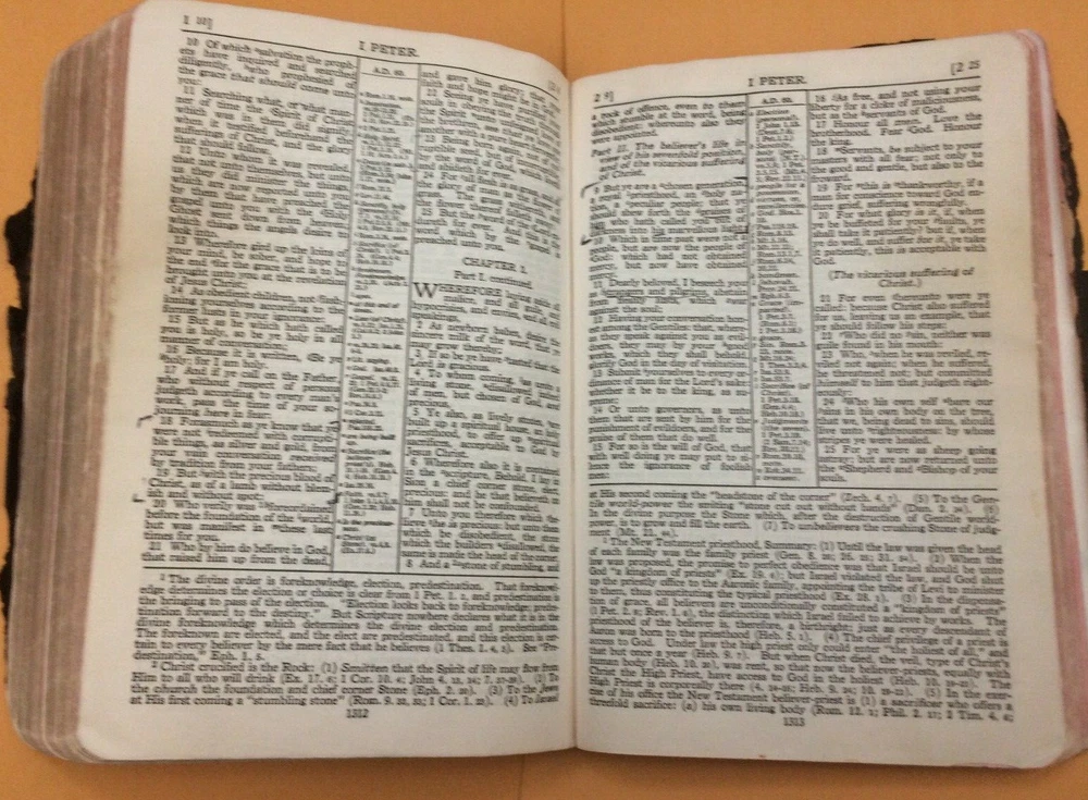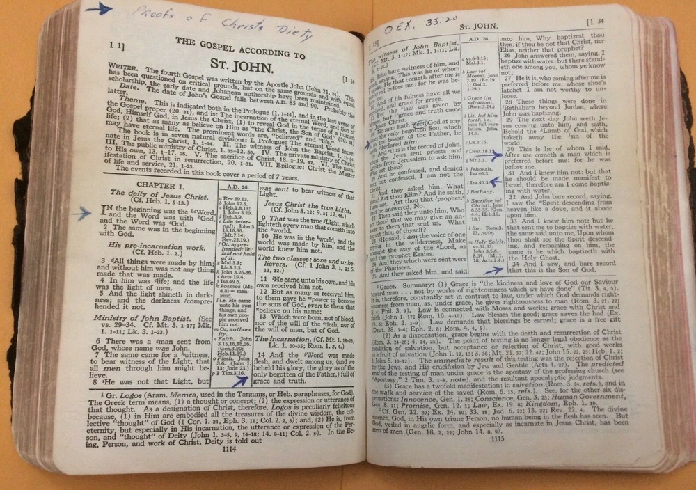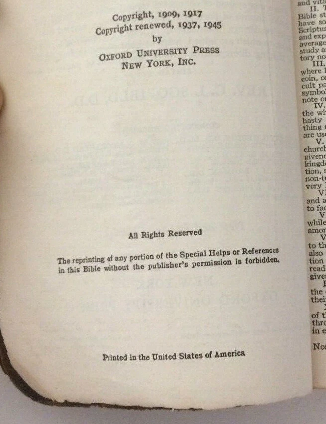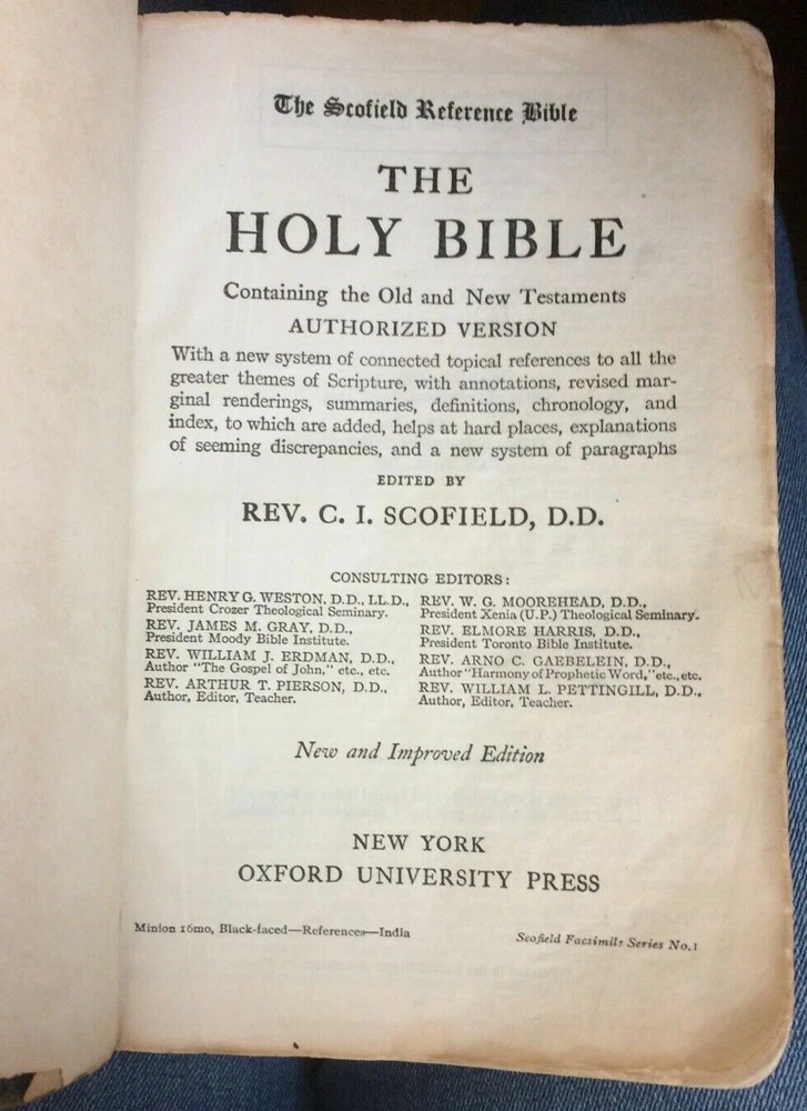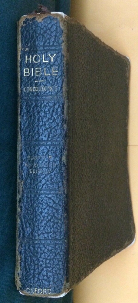 The listing is for Vintage 1945 Scofield Reference Edition Holy Bible, leather, Oxford Press, Rare! Series No. 1 The Bible has some markings and writings. The binding on the last part of the concordance has come loose. The leather is worn from use. Please see pics! Measures 7" x 4 3/4" x 1 1/4". Immediate shipping with tracking to U.S. only. Please email with any questions. Thanks for looking!