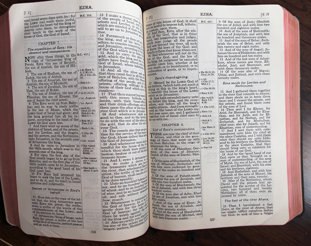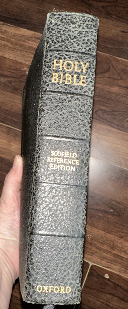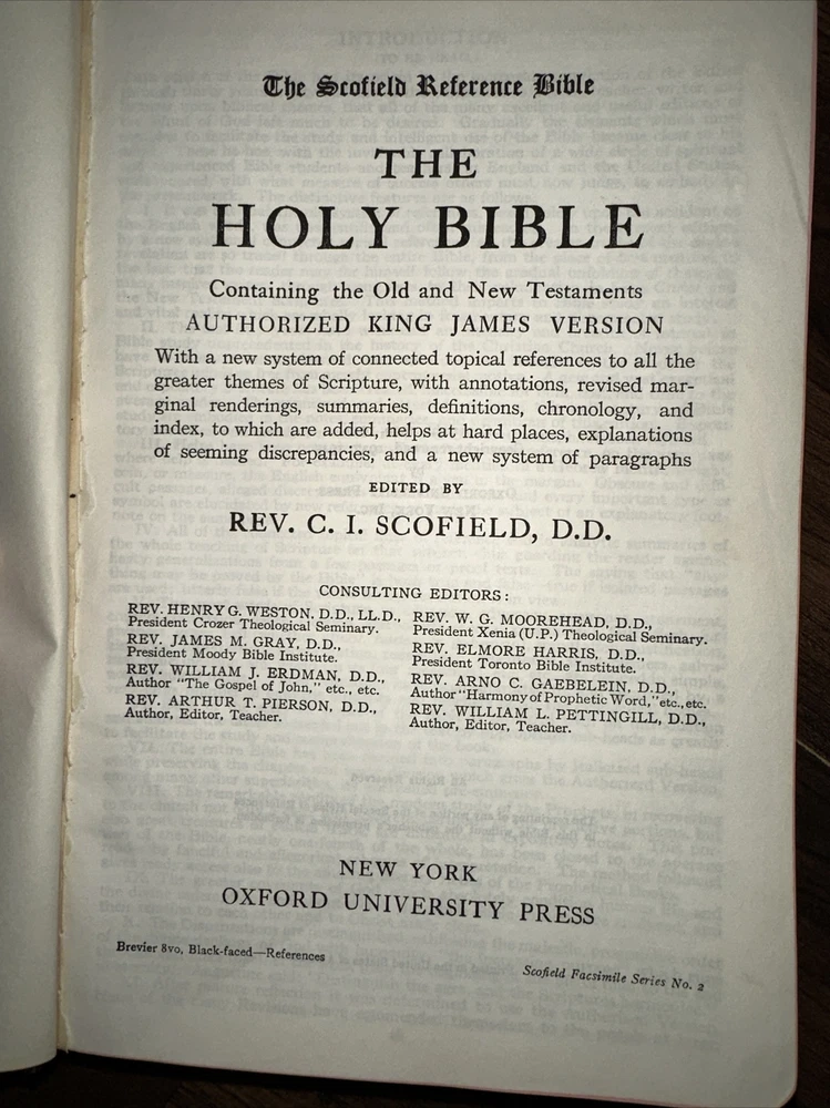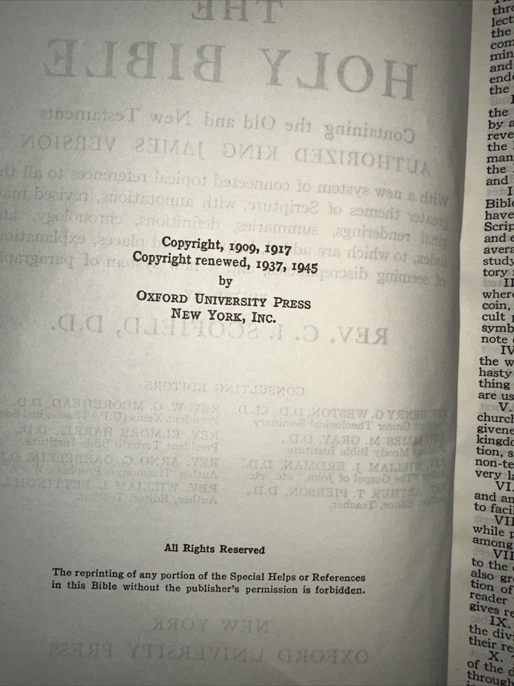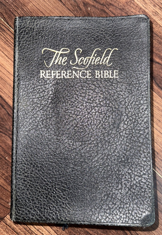 This is a vintage 1945 edition of The Scofield Reference Bible published by Oxford University Press. The binding is made of high-quality leather, and it includes the original/facsimile printing of the text. This Collector's Edition is an excellent addition to any collection and is a must-have for anyone interested in Christianity and Bibles. The book was printed in English in New York, and it contains no personalized inscriptions or signatures. It is a great reference book and a valuable resource for those interested in the Bible. This item is highly collectible and a great find for any book collector. NOTE THERE IS A STORED ODOR FROM AGE — it’s NOT OVERWHELMING -BUT PRESENT. See pics for details shipped usps media mail