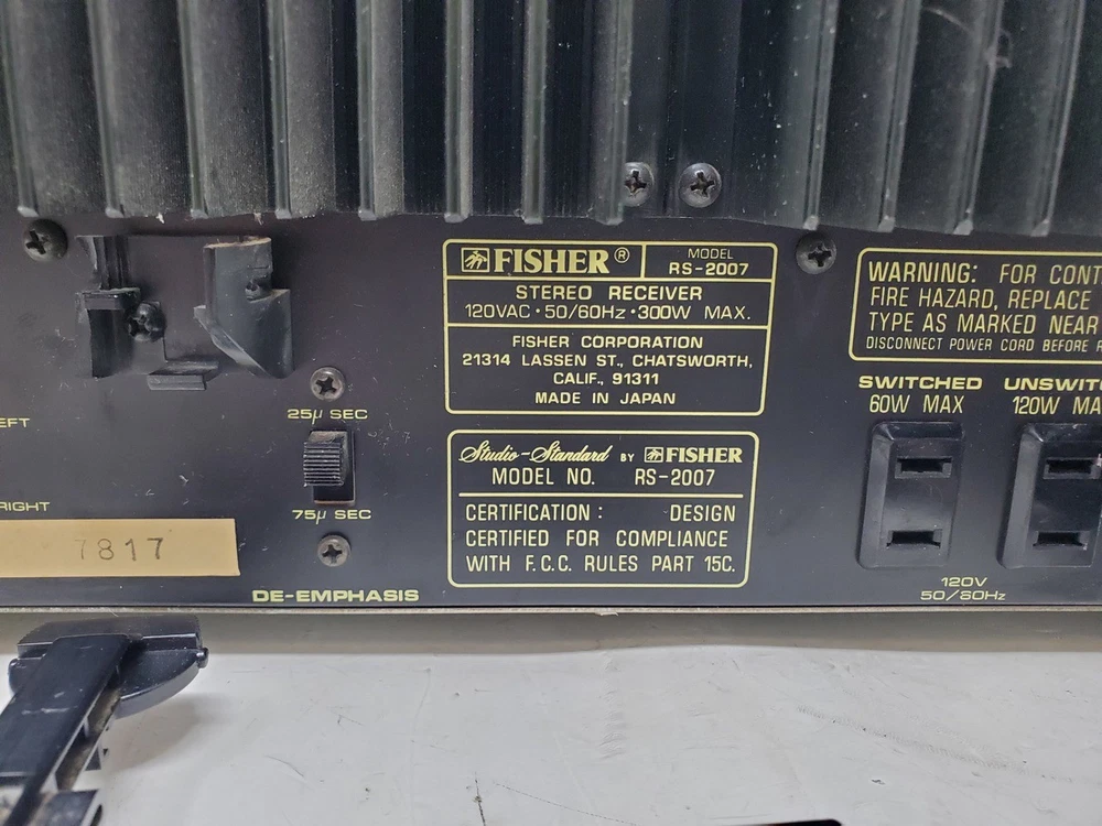 Vintage 1970's Fisher RS-2007 AM/FM Stereo Receiver Pre-Owned There Are Dings And Scratches Throughout The Antenna Is Broken/Detached From Receiver Please See Photos For Cosmetic Condition Has Been Tested And Works Well Ready For New Owner Welcome to our Money and More family! We moved with our 3 children from California to Iowa 26 years ago. We sold everything and opened our first store in Waterloo, Iowa. Over the years we grew from one to three stores in Iowa. We have always conducted our business based on our core values - we tell people the truth - we treat our staff and customers with respect - we price our products fairly - and we clean and test all of our used inventory thoroughly. All luxury handbags are guaranteed to be authentic and are certified authentic by a third party service. Our jewelry is tested to ensure that it's genuine and both our designer handbags and our jewelry are guaranteed to be as described. Rest assured that when you purchase from us you will get the item as described, in the time frame promised, and most importantly, you will be treated fairly. We value each customer - that has been the secret that has brought us success for the last 26 years: So once again Welcome to our Family!