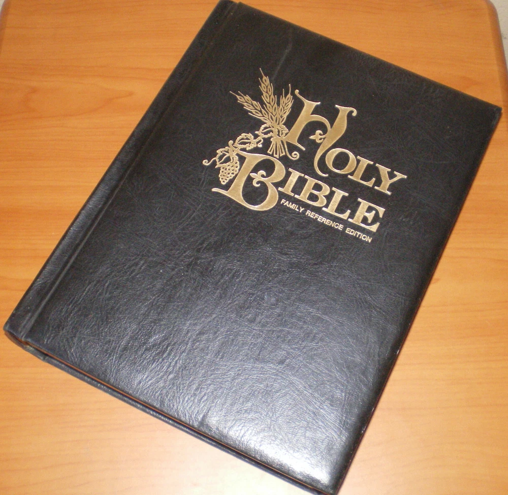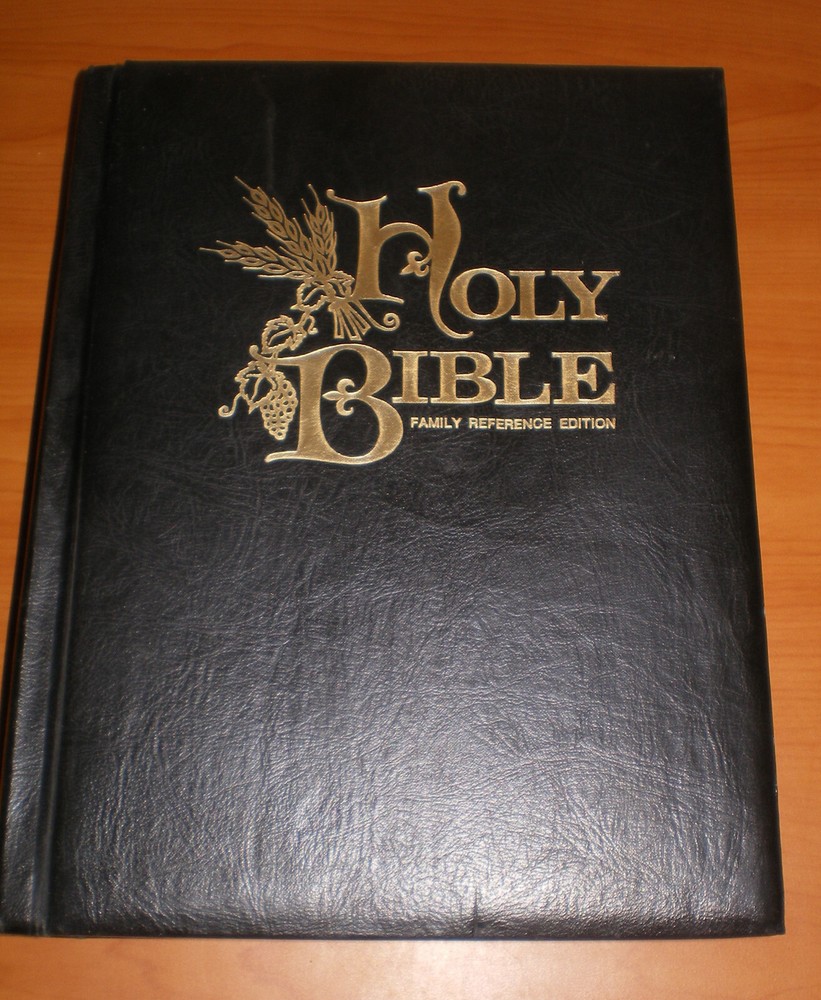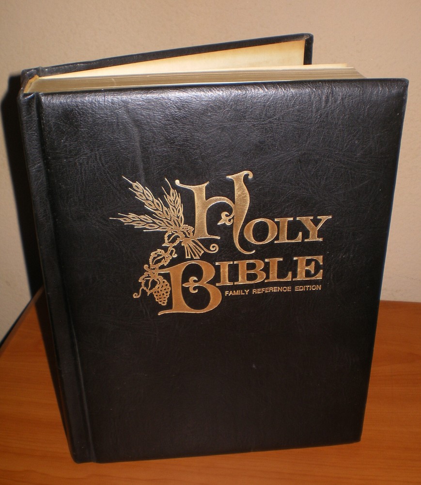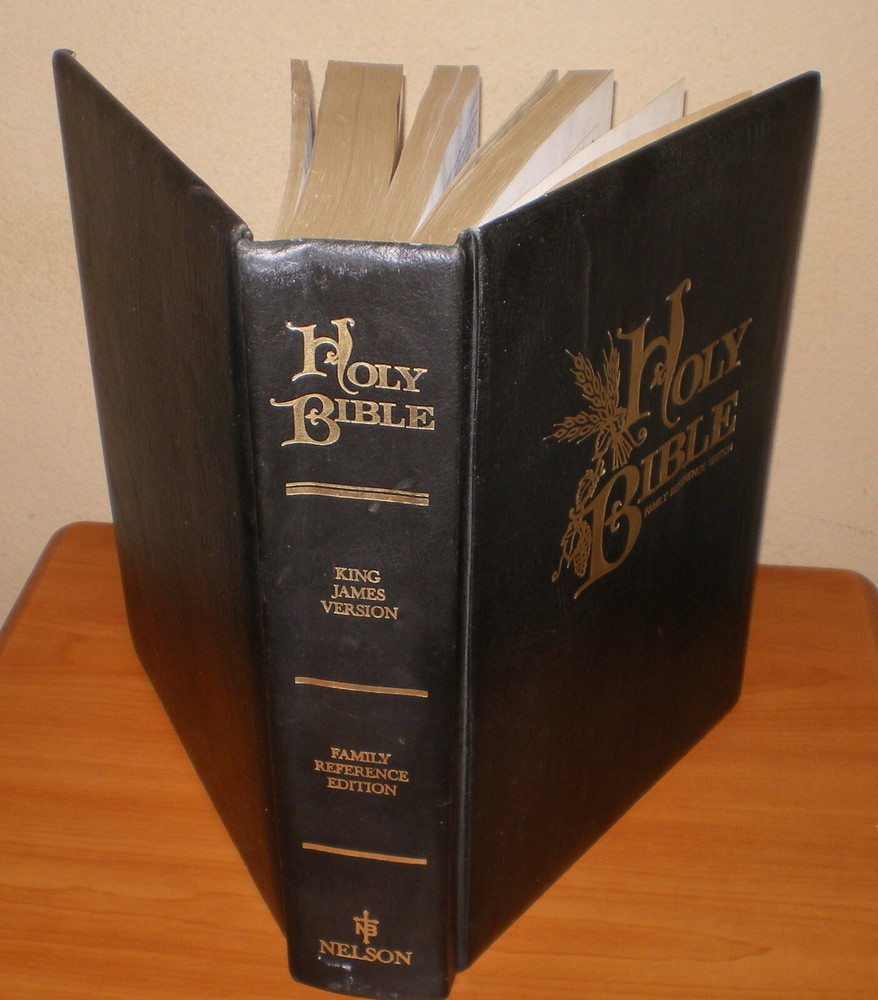 Vintage 1971 HOLY BIBLE Family Reference & RED Letter Edition * Leather KJV King James Version Nelson Hardcover Bible in very good vintage condition ... no highlighting, stains, odors, missing or loose pages. There is some writing in the Family Records section (in the Wife's & Deaths area only) - all other family records pages are blank - please see pics. Back cover is loose due the weight of the Bible - pics are included for you. All in all, the Bible is in great shape especially for it being over 50+ years old. Large size padded hardcover Bible - measures approx 11" tall x 9" wide x 2.5" Your item will be carefully packed to ensure its safe arrival to you.