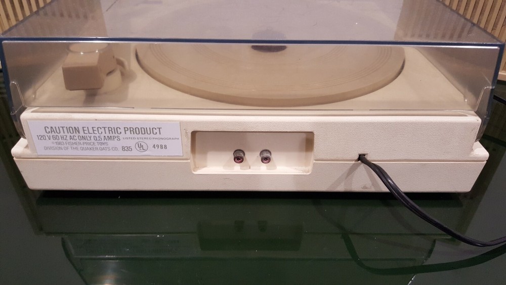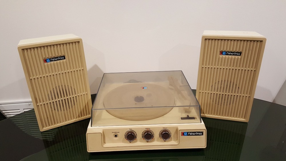 This is a 1983 Fisher Price Record Player Stereo with speakers #835. Condition is nice for the age, nothing broken, tested and still wotks, may need some adjusting as it seemed to turn slower than it ...