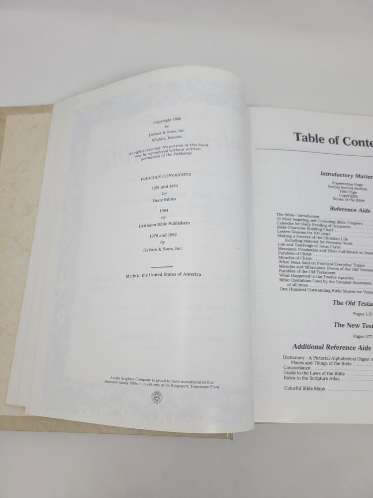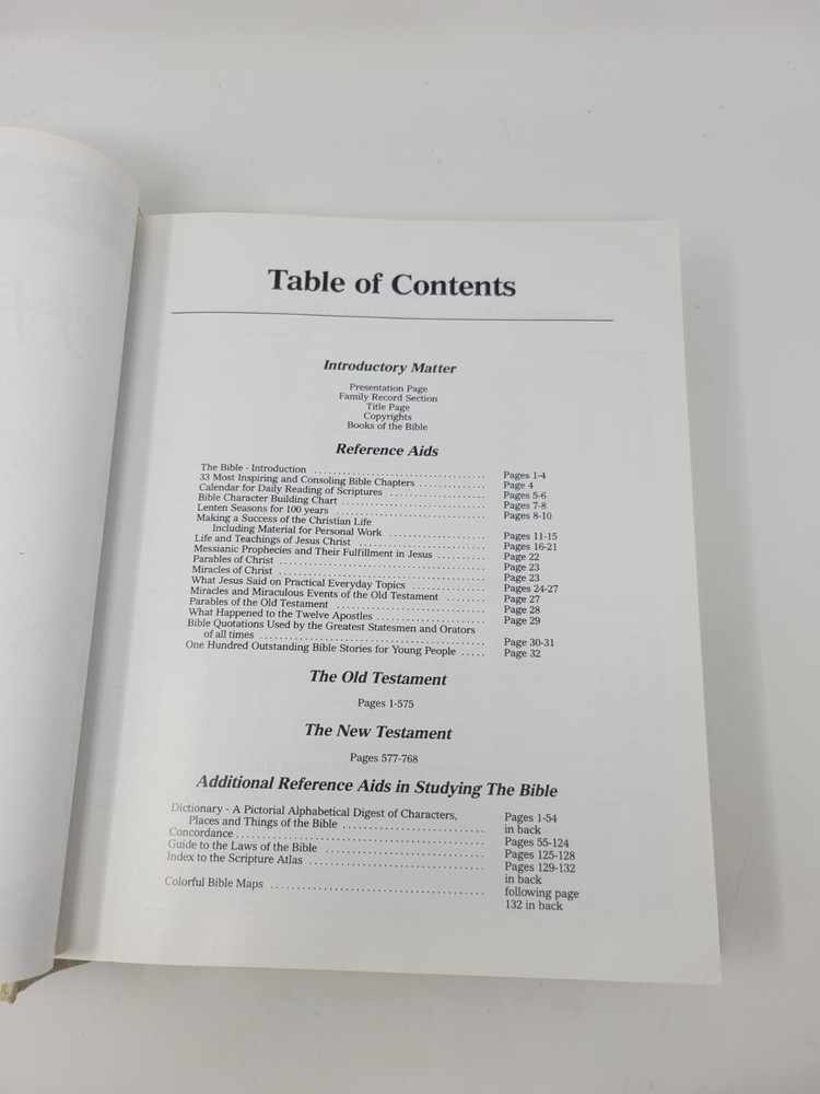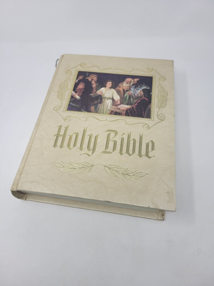 Vintage 1988 Family Holy Bible, King James Version, Master Reference Edition. Large Beautiful Bible with Leather-like Cover measures approximately 9" x 12" and is pre-owned and unused, not written in. Excellent vintage condition. Ships with USPS Media Mail. 2405