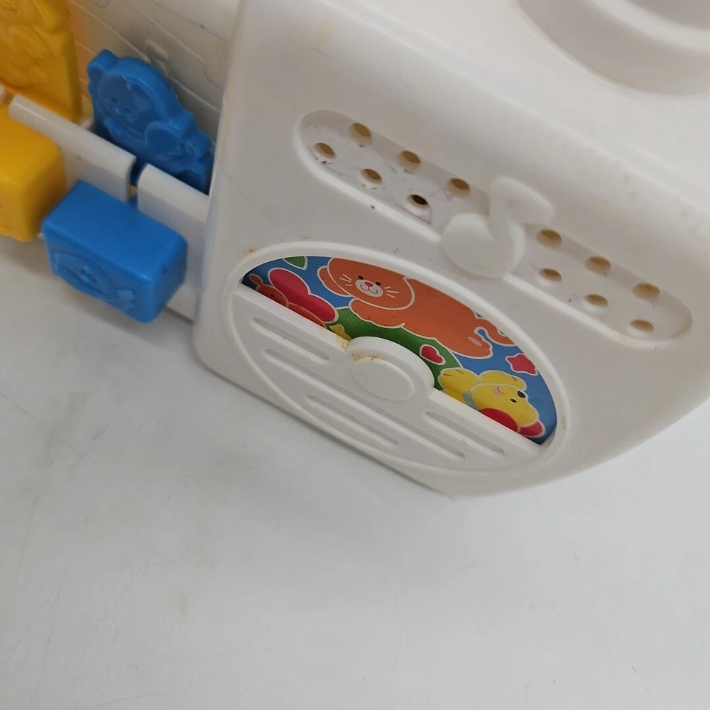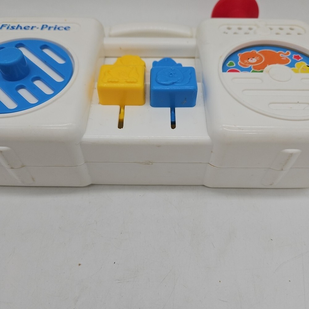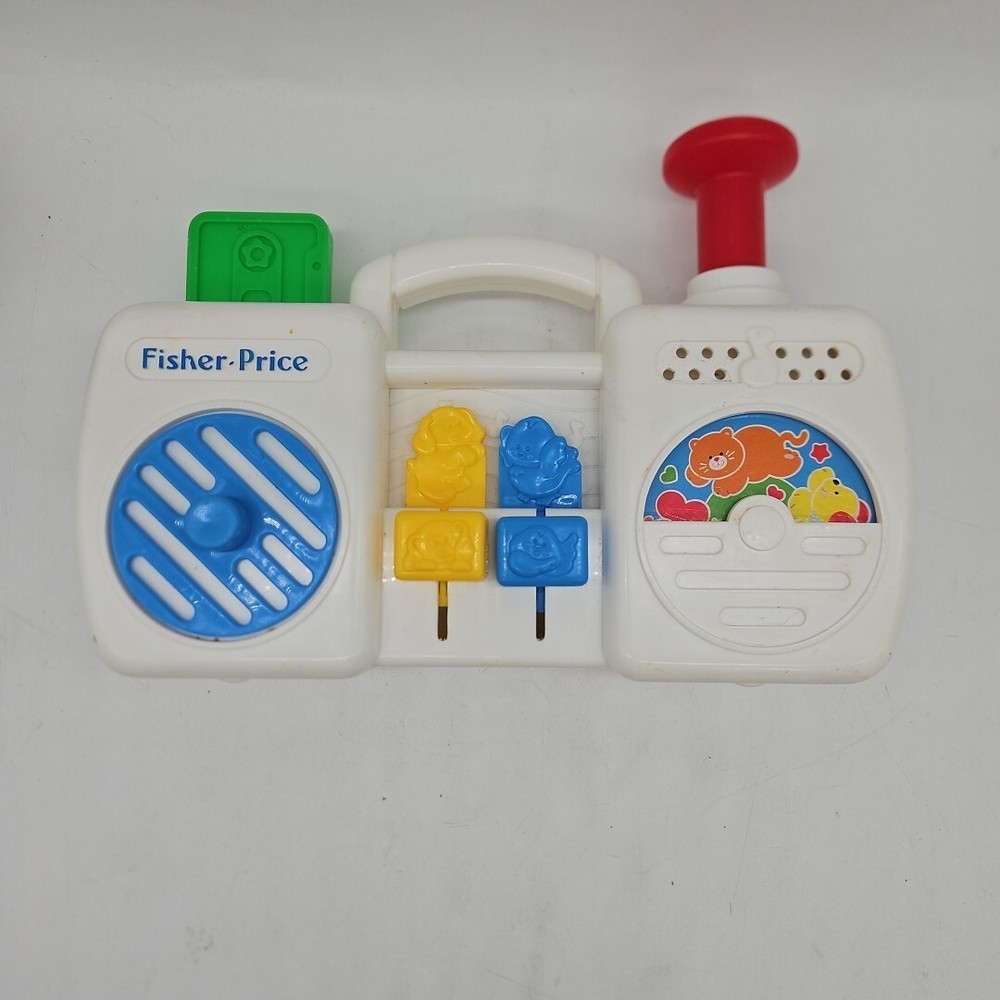 The vintage 1991 Fisher-Price Baby's Boom Box Model 1161 is a retro tape player radio designed for young children aged 1-2 years and under. This toy, made in China, features the classic Fisher-Price brand and is a nostalgic piece from 1963-Now. With its colorful design and interactive features, this toy provides little ones with a fun and engaging play experience reminiscent of the early 90s era. Perfect for introducing music and sounds to young children, the Fisher-Price Baby's Boom Box Model 1161 is a charming addition to any preschooler's toy collection.