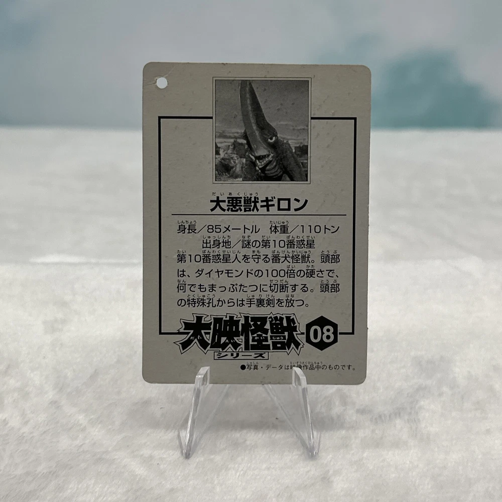 Own a piece of Japanese pop culture history with this Vintage 1998 Giron Soft Vinyl Figure. This 6-inch figure is a must-have for fans of the Gamera and Daiei Monster franchises. Made by Bandai, this collectible item is perfect for toy and monster collectors of all ages. The figure originates from Japan and comes with a special BANDAI CARD ONLY. This rare item is perfect for display or for those who love to play with their toys. Don't miss out on this opportunity to own a piece of toy history.