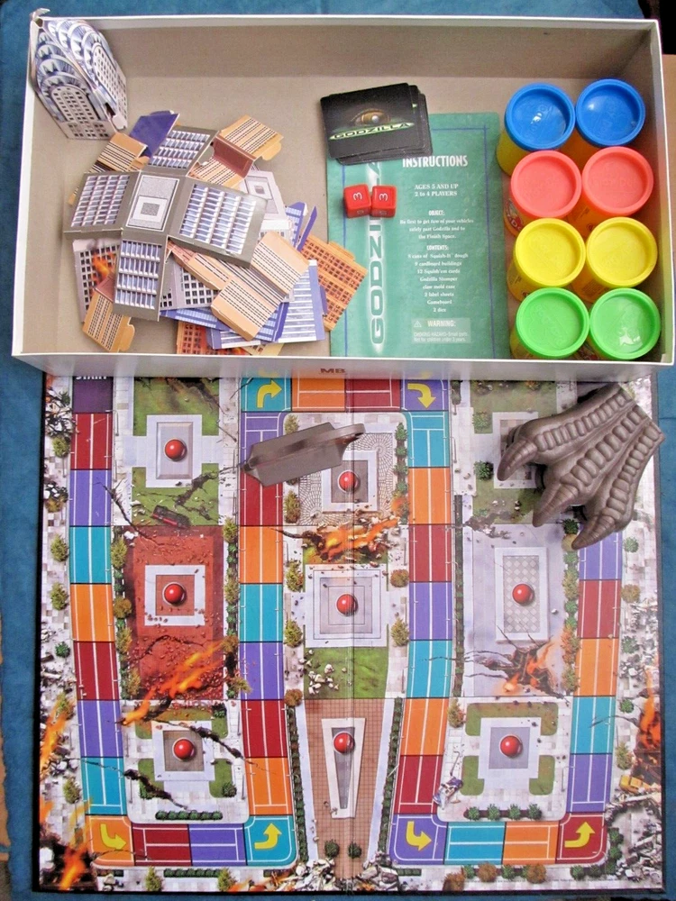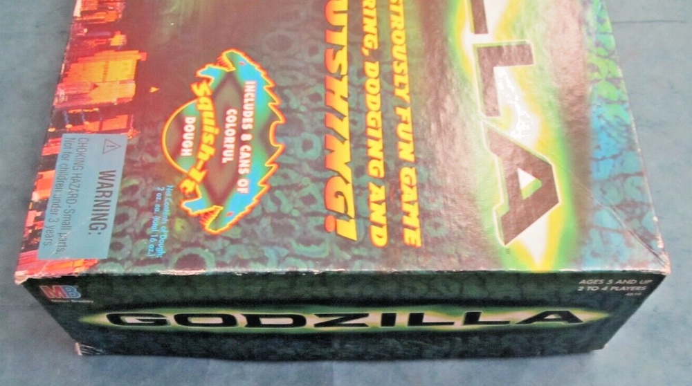 Vintage 1998 Godzilla game from Milton Bradley. This fun game that is played with Play-Doh pieces is complete except for the Paly-Doh (the cans are included but empty as the Doh had dried up) Perfect as a gift or for any collector. Shipping: Item will ship upon receipt of payment We no longer have free shipping on our items so that our prices reflect only the ITEM not hidden fees All sales final (Please remember that this item is VINTAGE not "new repro" when reviewing the description. NOTHING we sell is in perfect condition, we believe in the bumbled, the botched and the bruised are cool and deserve to continue to be enjoyed. Also when using or caring for the item!) Please feel free to ask any questions regarding this item! Please note that although all sales are final, we will always work with you in a professional manner to ensure that you are satisfied with your item. We only want great new homes for our items.