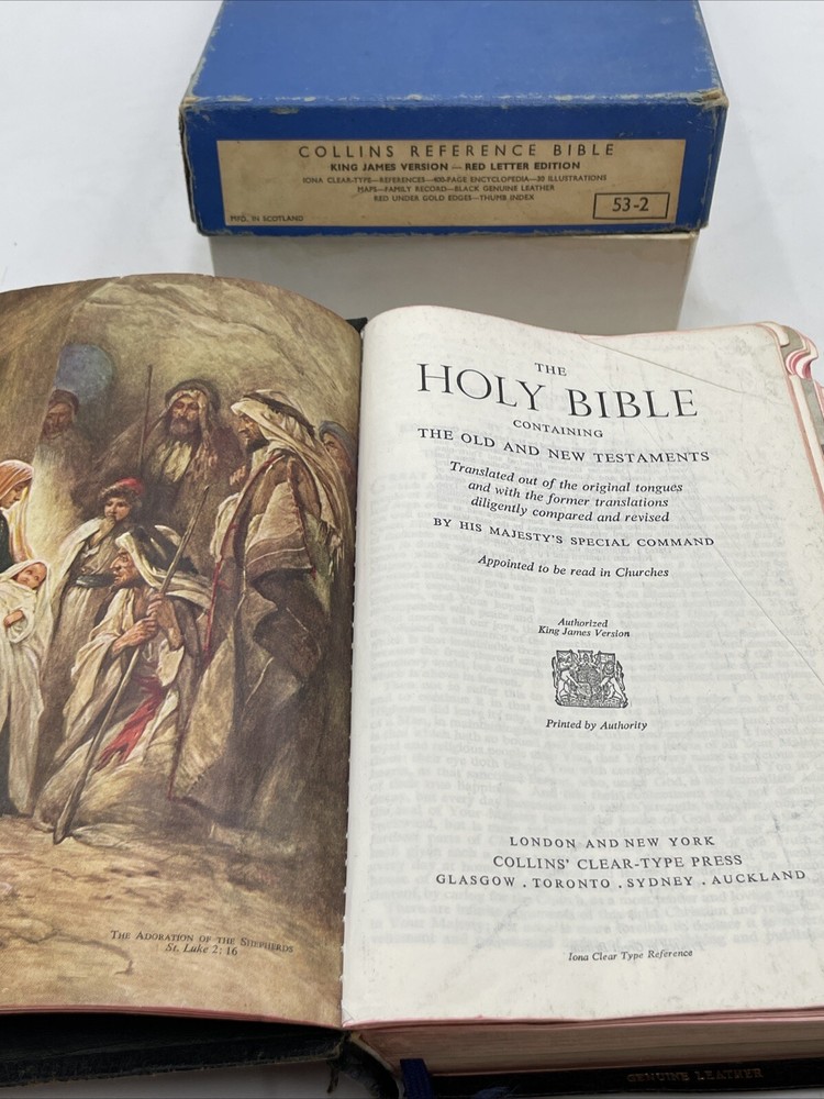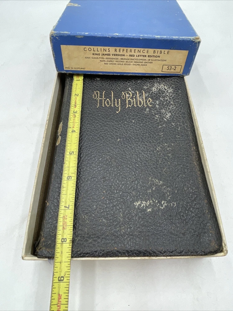 Vintage 50a Holy Bible Collins Reference KJV Red Letter Leather Thumb Index Box When considering the measurements and condition of the item, please refer to the detailed photos provided in the listing. The photographs accurately represent the size and condition of the item. Please note that the items we sell are thrifted goods, which means they have been previously owned and may show signs of wear. This could include slight odors, marks, or other imperfections. We carefully select and inspect each item, but due to their pre-loved nature, they might not be in perfect condition. Additionally, if you choose to purchase more than one item, we are happy to offer combined shipping to help you save on costs. Please note that we only accept returns for items if they are not as described. Feel free to browse through our store to discover more great deals and take advantage of our combined shipping offer. Thank you for considering our products! D1