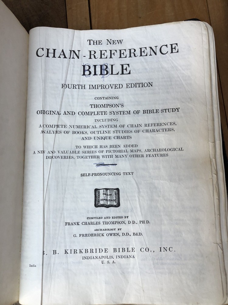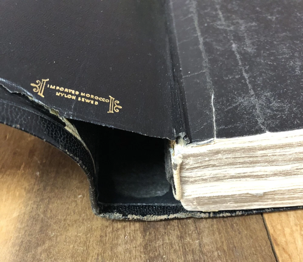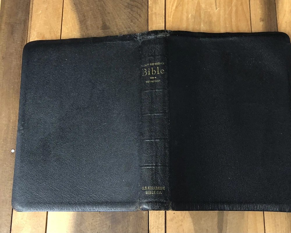 Vintage 60s Thompson Chain Reference Bible Fourth Ed KJV 1964 Morocco Leather Offering a vintage bible titled, "The New Chain-Reference Bible" as pictured. if you enjoy reading a well worn, soft bible, this one is for you! Fourth Improved Edition copyright 1964 King James Version KJV includes maps, charts, character studies, concordance, cyclopedia, index and many more features weighs about 2# 10 oz without packing materials significant wear! binding is loose from Bible 2 pages are torn loose from spine but included expect tearing, wear, creased pages, etc buying as is, as pictured, issues noted