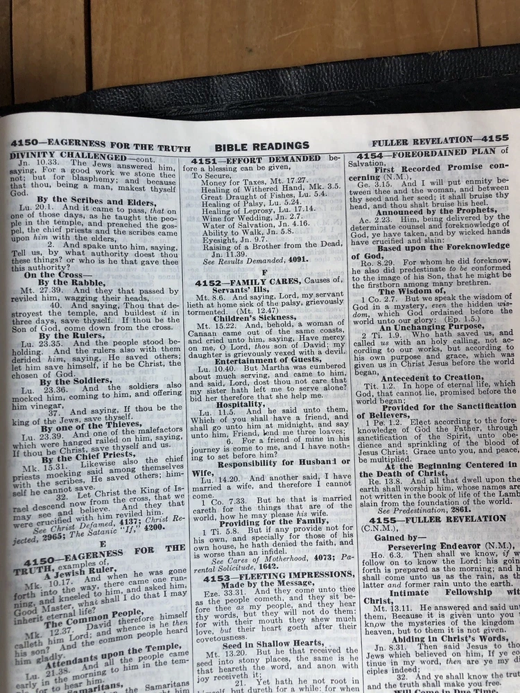This vintage Thompson Chain-Reference Bible is a treasure! The supple Morocco leather feels amazing, and the well-loved wear adds character. Despite some loose pages and binding, it’s packed with incredible features like maps, concordance, and chain references—perfect for deep study. The classic KJV text and 1964 edition charm make it a must-have for collectors or anyone who loves a Bible with history. Lightweight yet rich in content!