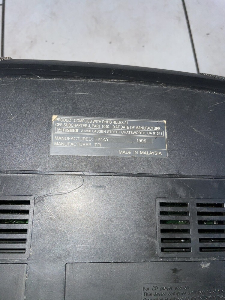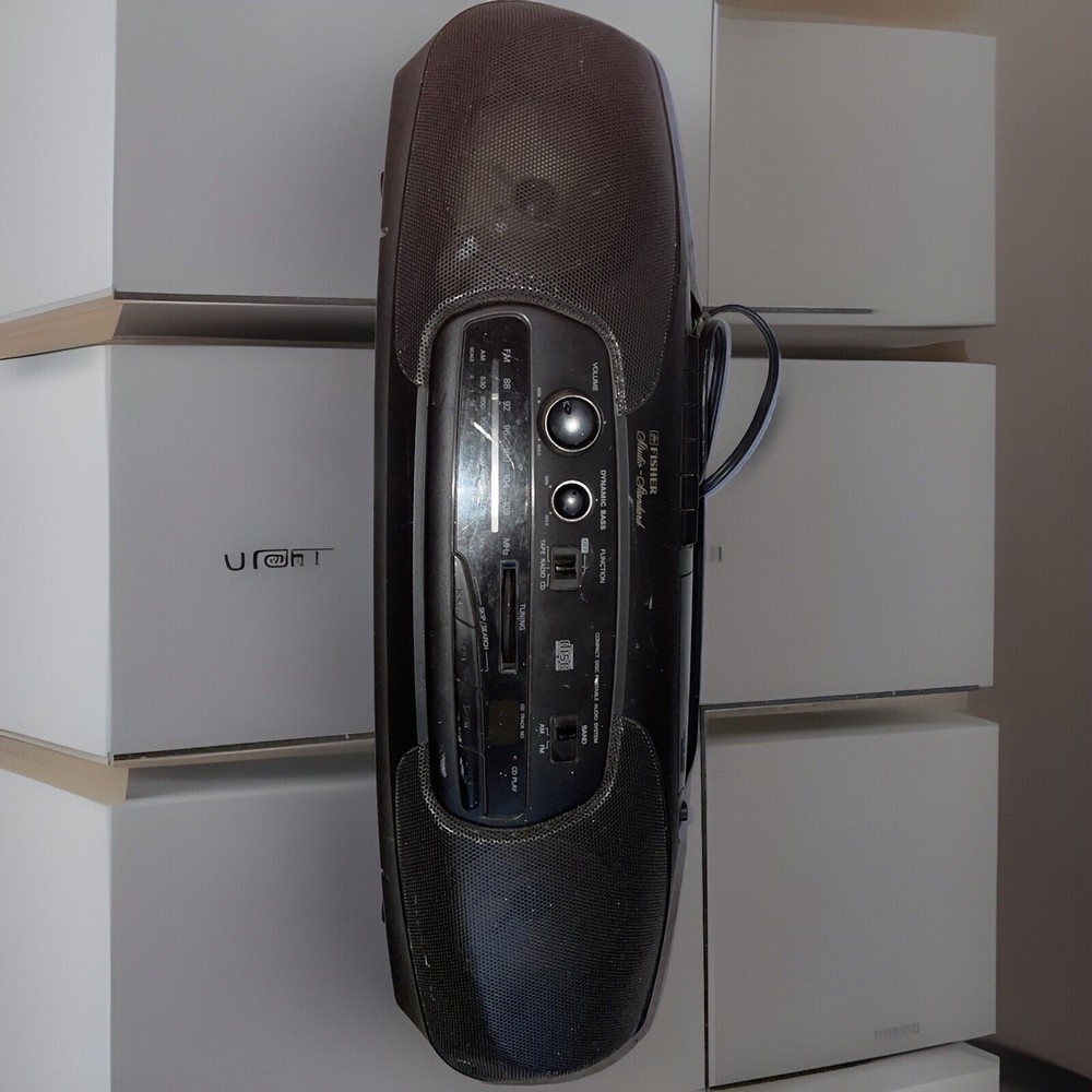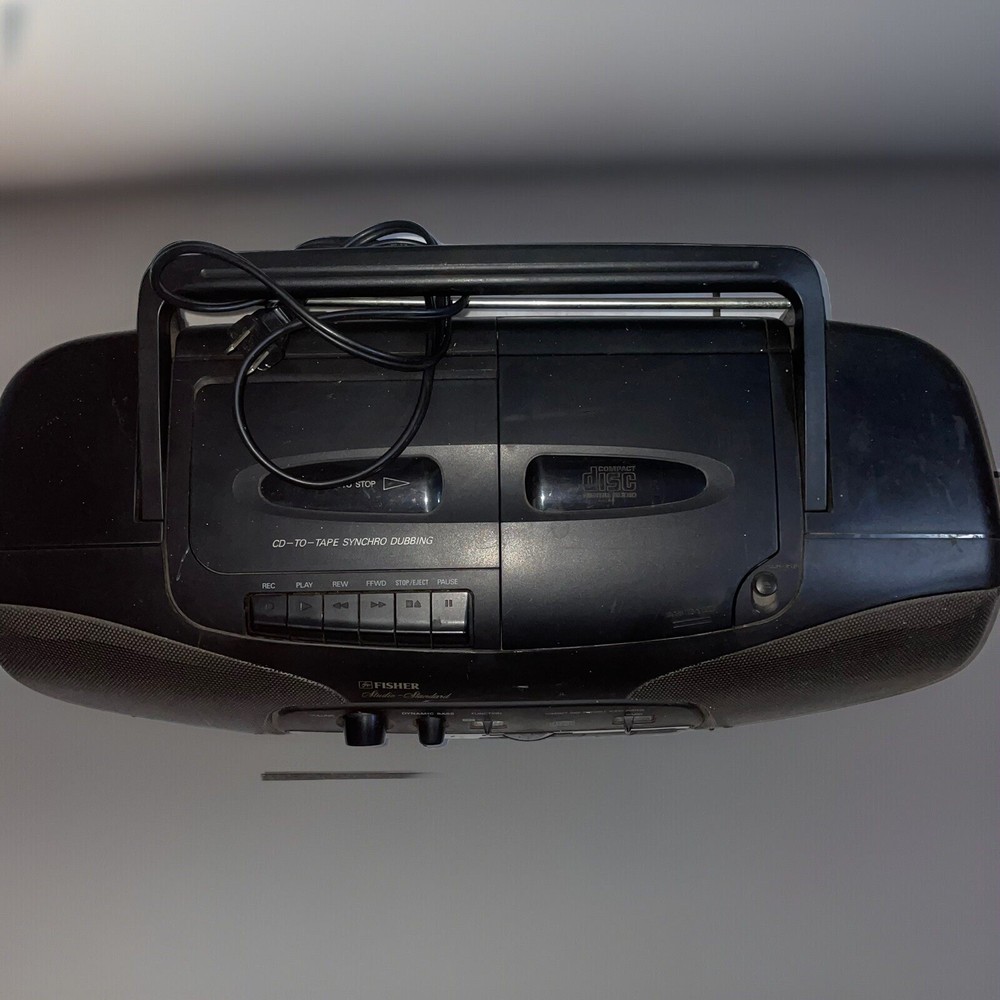 Vintage AM/FM Stereo Cassette Boombox - Fisher Studio Standard Model PH-DS50. Used vintage condition with visible signs of age and use. Nothing is broken, but it does have some scratches, discolorations and spots of dust. Cassette, radio and CD works. Recording functionality was not tested. AC power cord included. Battery compartment is clean. Tested with AC power cord only. Please see actual photos