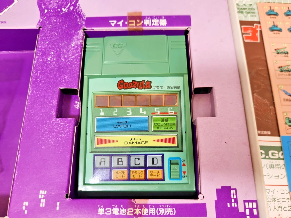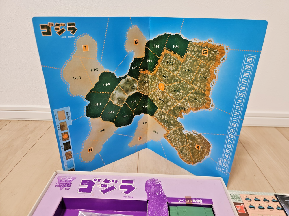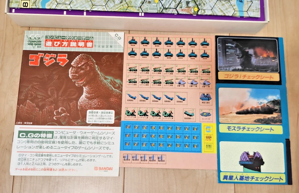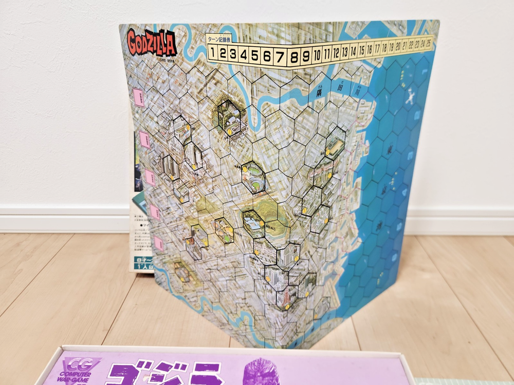 For sale is a vintage Godzilla board game produced by Bandai in 1984. The contents have never been used and the box has some storage wear, but is overall in fine condition for being 40 years old. You can find more info and English instructions at the following address: https://mykaiju.com/godzilla-computer-war-game/