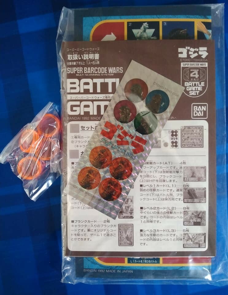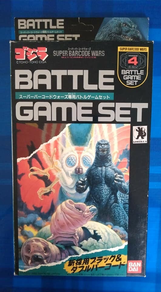 Vintage 1992 Bandai Godzilla Mothra Battle Game Set #4 Barcode Wars MIB Very cool, game set which would also serve as an awesome display diorama! Contents are brand new, sealed in baggie, including playing board, playing cards, and token player pieces. Box is big! 11 inches tall and 5-6 inches wide. Great box illustrations and graphics. Shipping includes online tracking and insurance.