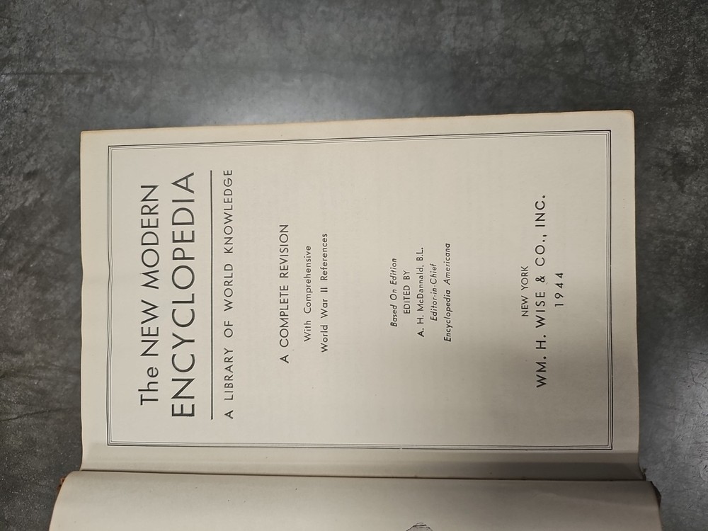 Vintage Book. 1944 The New Modern Encyclopedia Library World Knowledge Used. Ships Media Mail. 1 Day Handling Time. Be sure to check my other listings. And subscribe as I do listings almost daily. I can do combined shipping when availiable. Thank you.