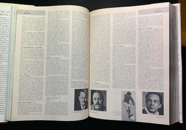 17 volumes of Britannica's Book of the Year between 1968 and 1985. 1983 has gone missing. First 6 volumes have dust jackets. Includes the 200th Anniversary edition from 1968....