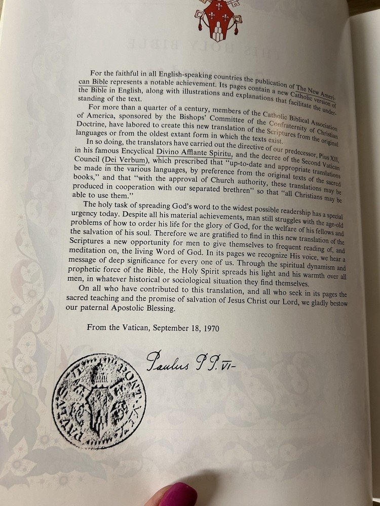 Really nice condition coffee table size Bible Catholic Heirloom Edition. No writing or tears on the pages 12” tall
