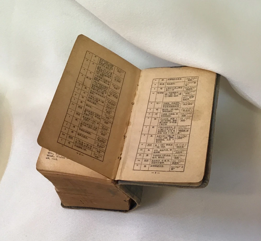<div style="text-align:center"><img src="http://ti2.auctiva.com/sw/java.gif" border="0"><br><table align="center"><tr><td><a style="text-decoration:none" href="http://store.auctiva.com/Antonian1040"><img src="http://ti2.auctiva.com/sw/browse1.gif" border="0"></a></td><td height="23px" valign="middle" align="center"><font face="arial" size="2"><b><a href="http://store.auctiva.com/Antonian1040">Antonian1040</a> Store</b></font></td></tr></table></div> *** FIND US ON FACEBOOK & PINTEREST*** "North Star Antiques" @Northstarantiques FOR YOU TO CONSIDER NOW: Vintage Century English Chinese Dictionary Unabridged Pocket Size Blue Book This small book measures approximately 3 1/2" T x 2 1/2" W x 2" D The pages, cover boards and spine show wear and marks consistent with age. We believe this book is dated to the late 1800's or early 1900's. Due to the age of this book I would like to mention it is quite fragile to touch. Also it has something I have not seen before and I am not sure if there is a term for this or not however on the outside of the pages the letters of our alphabet are written almost as a tab to find the page by letter ex: A B C D etc.. Thanks for looking!