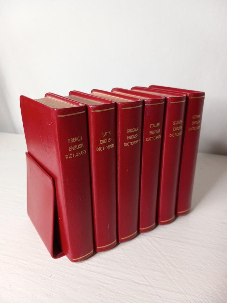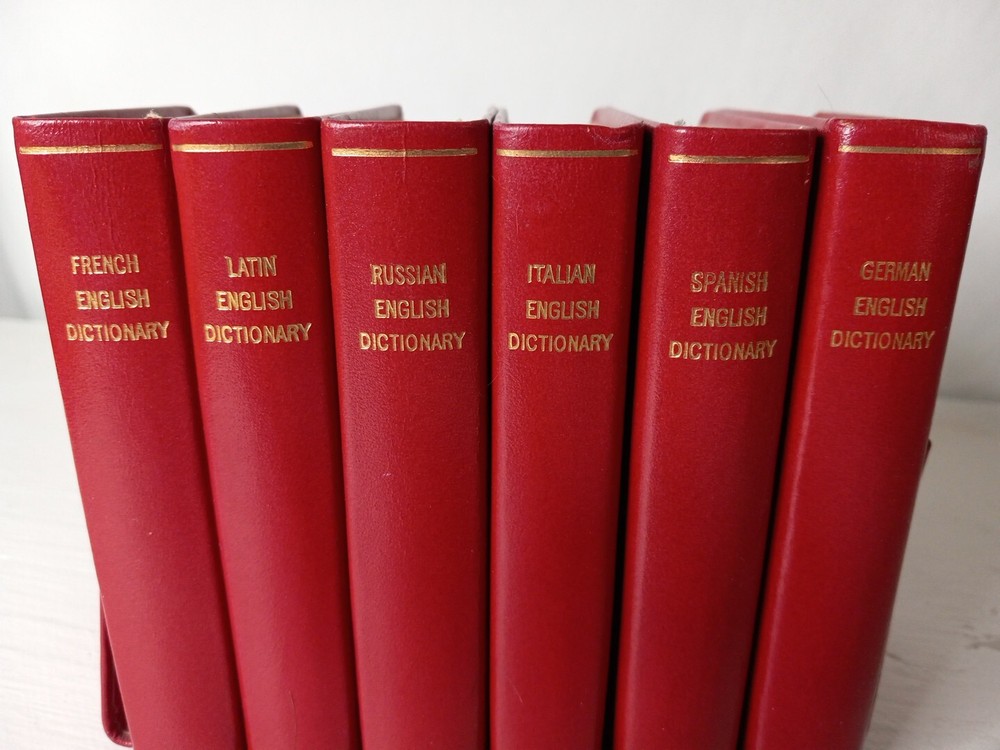 This vintage Collins gem dictionary set includes Russian, Latin, German, Italian, and Spanish languages. The leather binding adds durability, and the set was printed in 1961 by Collins Clear Type Press. Excellent condition. Great gift for your polyglot friends. It is a great addition to any reference collection, especially for those interested in Sets and topics related to language and culture. The set includes over 2,500 pages and is perfect for collectors, enthusiasts, and anyone who loves vintage books.