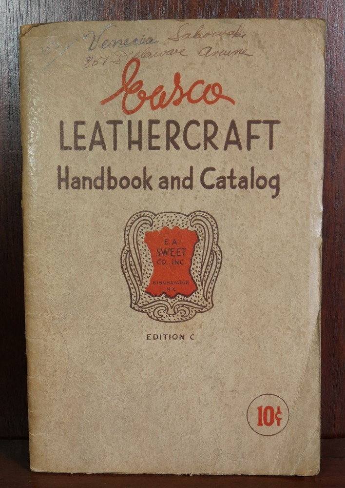 Leather Craft Catalog Author: Vintage Easco Title: Leather Craft Catalog Publication: New York: E. A. Sweet Co. Inc., c. 1930 Description: Measuring approximately8.75" x 5.75" with 40 numbered pages. This catalog is in good minus condition. Moderate creasing and chipping around all edges of panels. Previous owner's signature and address on front panel. Marker on front endpaper. Address stamp on front endpaper. Interior pages are bright and clean. Please view the many other rare titles available for purchase at our store. We are always interested in purchasing individual or collections of fine books. Inventory #(O1-29). Seller ID: 5516 Subject: Reference/Textbooks Ernestoic Books Terms All orders ship within two business days. Standard mail is USPS Media Mail. Expedited and international shipping are also available. We offer combined shipping on multiple orders. All items are guaranteed to be as described or they may be returned within 30 days of receipt for a full refund. This listing was created by Bibliopolis.