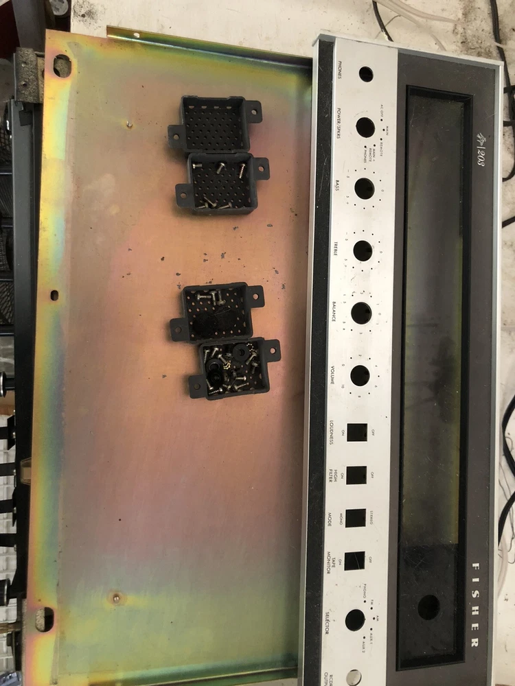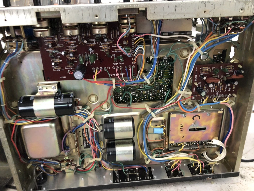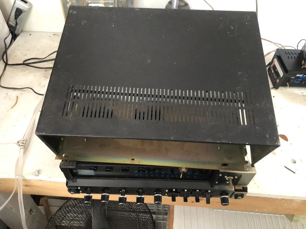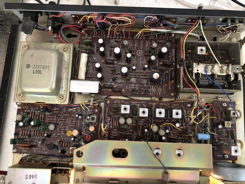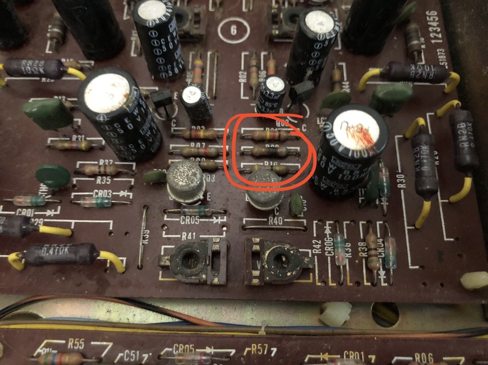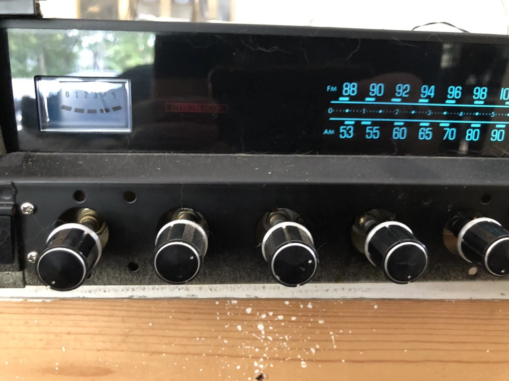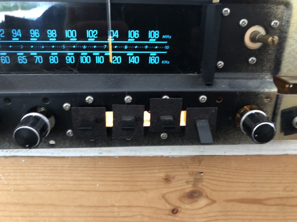 Not sure of the issue with the unit, It powers on, and plays thru one channel ( radio and tape input tested ) There is a burning resistor on the power amp ( visible in pic ), could be a capacitor problem driving current up, but could something have prematurely failed the capacitor, if that is the issue ? Not sure Lights up and tunes in, AM antenna is broken off, missing tuning knob. Nice project for a restorer to bring this beauty back to life.