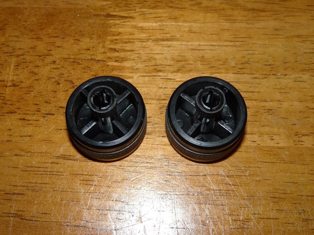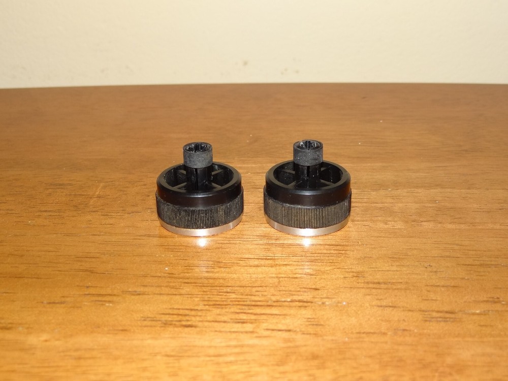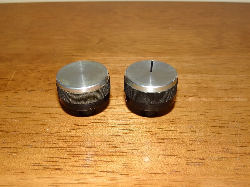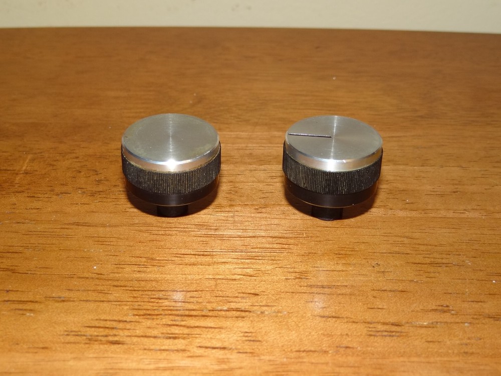 Two knobs from Fisher 28 turntable. 1-1/8" diameter. Good condition. Picture show actual items for sale. Thanks for looking!