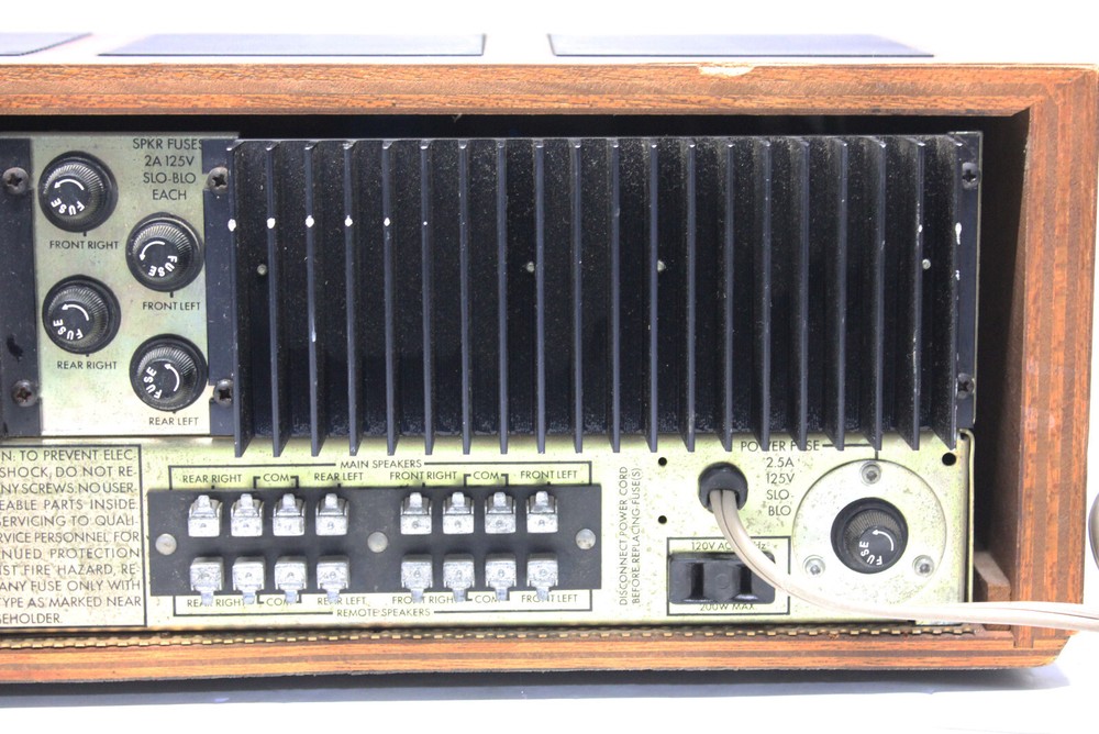 Very Good Physical Shape. Tested and Working . The Source Selector and Mode / Monitor Potentiometers are hard to turn and in need of attention either lubricated / cleaned / replaced. Sounds Great and is a beast of an amplifier. Enjoy Quadraphonic and Stereo Recordings the way they were meant to be heard! Check out Photos for Rear Connectivity. Item is North American 120V AC unless otherwise specified. Photos are of actual item for sale. Please look over photos carefully for condition of item. What is photographed is what is included ONLY. Item Will be Carefully Packaged and Insured!