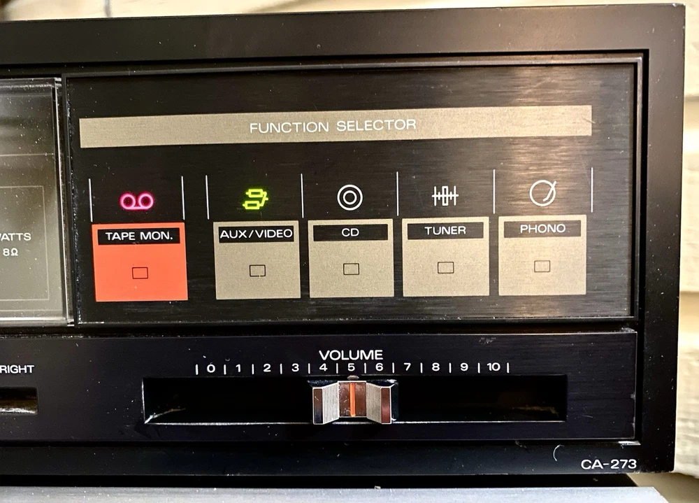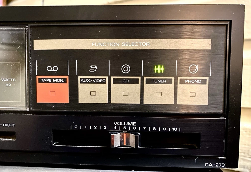 The Fisher CA-273 Studio Standard Integrated Stereo Amplifier is a vintage audio device known for its high-quality sound and durable construction. Made in Japan, this stereo amplifier features a phono input for connecting a turntable, aux input for connecting additional audio sources, and CD and tape inputs for integrating with other audio devices. With its sleek design and reliable brand reputation, the Fisher CA-273 is a sought-after choice for audiophiles looking to enhance their vintage audio setup. Clean, WORKS!