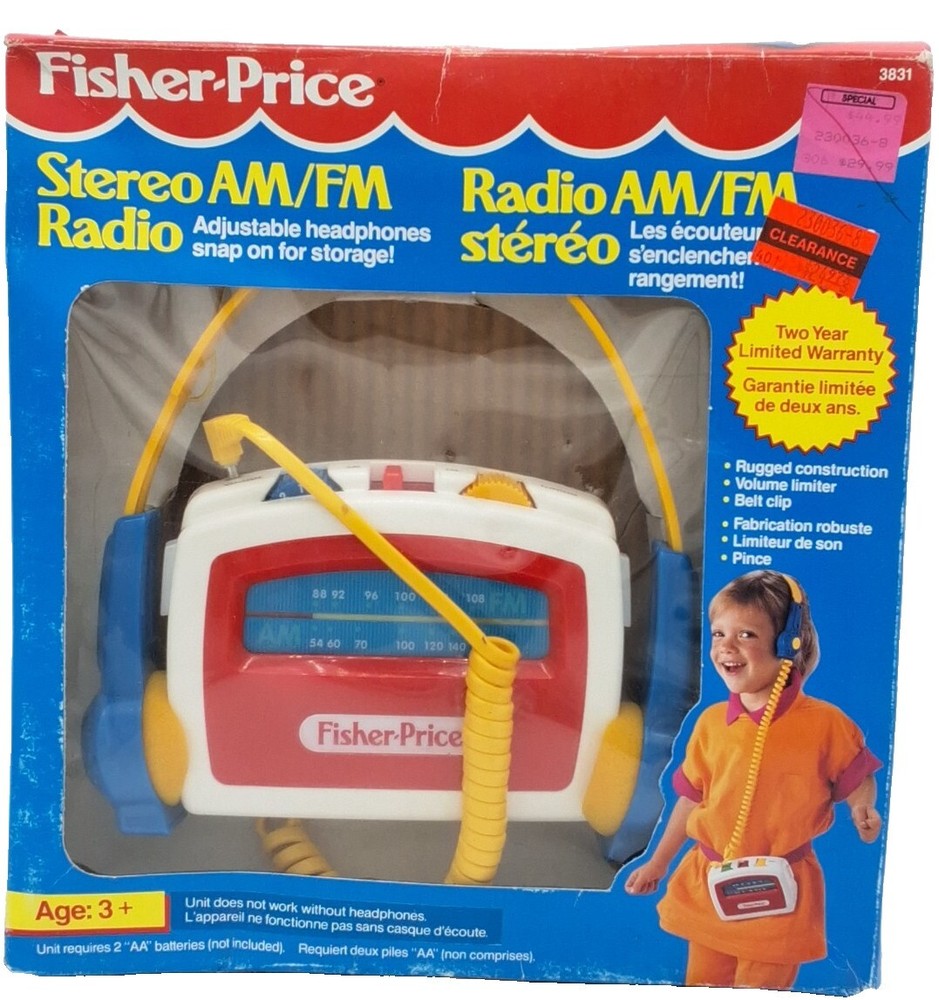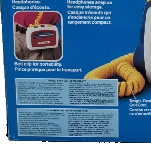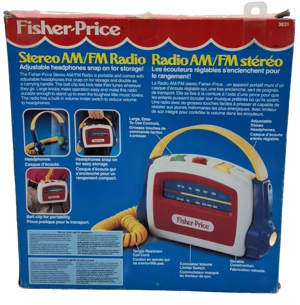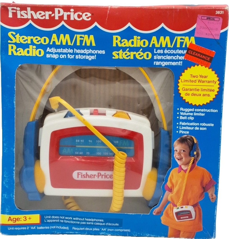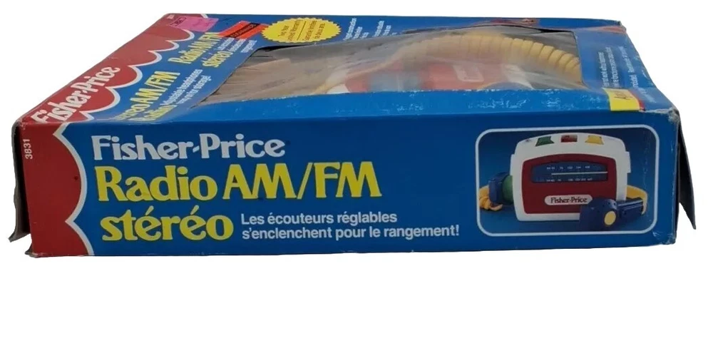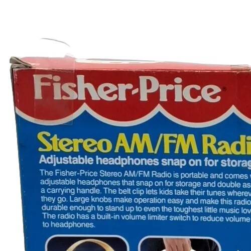 Vintage Fischer Price "STEREO AM/FM RADIO" with adjustable head is the perfect toy for children aged 3 years and above. Made in China in 1991, this toy radio is a part of the Fischer Price Kids family and is an excellent addition to any preschooler's toy collection. With its easy-to-use buttons, this toy radio will provide hours of entertainment for your child, allowing them to tune into their favorite radio stations and adjust the volume as needed. The adjustable head feature makes it easy for children to carry the radio around and enjoy their music wherever they go. Overall, this Vintage Fischer Price Toy Radio is a must-have for any young child who loves music and exploring new things. The box packaging does have some issues with wear on edges and corners. In new condition the box has been opened. Refer to photos for your personal examination of the condition. Thanks for your interest, and have an amazing day, Eh ! Tony-Vintage Products Canada 🇨🇦