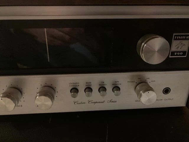 Fisher 290 receiver in very good shape, lettering slightly worn away on speaker selector switch. New LED lights. There doesn't seem to be much info on this receiver, but it appears to be very similar to the Hitachi SR-302, if not the same.