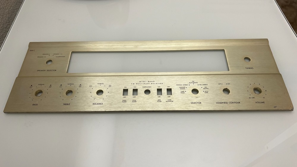 For sale is a Fisher 500C faceplate. Fair condition. One corner is badly dinged. Terms (Please read these) Please message me if you have any gear for sale but don't want to deal with listing. I live in Central California and travel to LA as well as the bay area often! I purchase single items as well as collections. You do not need to live near me. I have purchased hundreds pieces of equipment over 10 years for my own collection and to restore for sale. The Ken Rule: If you are local and wish to purchase an item (typically only speakers), you will need to pick up the item, and I will be unable to deliver under any circumstance unless the following is understood and agreed to: I am unable to help you audition, A/B, or move gear unless I am compensated up front, and it is understood that my time is at least as valuable as yours. If we agree on a trade in lieu of cash payment, you must have this gear ready for me at the time of the transaction. No IOUs. If you end up not liking the speakers or your wife, girlfriend, significant other tells you she doesn't like them, you will be responsible for selling them, I will not take returns unless I am compensated for the time you had the item as if a rental. This rules comes from dealing with an individual who offered an attractive trade if I delivered the speakers to him. This ended up being a tremendous waste of time. I sell mostly vintage electronics. As such, these items are old and typically out of spec from when they were new. I do my best to test these items and make sure they work before they're sent out, but I do not guarantee or represent that they will meet the original specifications. I may not even be able to test them, in which case assume that they don't work. However, there are times where I may miss something. If that happens, I hope that you would agree that the most efficient way to take care of an issue is if you simply message me before opening a case or doing anything else. Selling items on eBay is a side effect of collecting vintage electronics. I need an outlet for these items online, so I have no reason to send you something that doesn't work unless I've noted that it doesn't. This is not my day job and I am not here to try to make a quick buck. I will do my best to represent all major cosmetic damage to any items that I sell, but when you purchase something from me, expect minor scratches and nicks unless I've noted that the item is free of them. I pack items correctly. I know what it takes to get an item to you safely. As a result, you may see that the shipping quote shown is higher than you're accustomed to. Rest assured, I lose money on just about every item I ship when packing materials are considered, but if I don't, I will absolutely refund you the difference. You will NOT have to ask for it. I will do my best to get items out within a few days, however there are instances where that is not possible especially around holidays. Please see the handling time to know how long it may take for me to ship an item. The policies here are difficult in this regard because these vintage items in particular need to be moved and packed carefully. I do not want to damage anything by rushing. Buying the proper materials may also take time. I am not as fast as Amazon, but I guarantee I'll pack better. With this all being said, if there is any reason that you don't feel that you can leave FIVE stars in every category, please reach out to me before leaving any feedback other than positive with all five stars in every category. FOR EBAY GLOBAL SHIPPING PROGRAM CUSTOMERS: The program will not allow me to ship tubes. If you purchase an item with tubes in them, the TUBES CANNOT BE INCLUDED. I can send them to you directly, but they will not be included with your shipment. Please message me to work this o