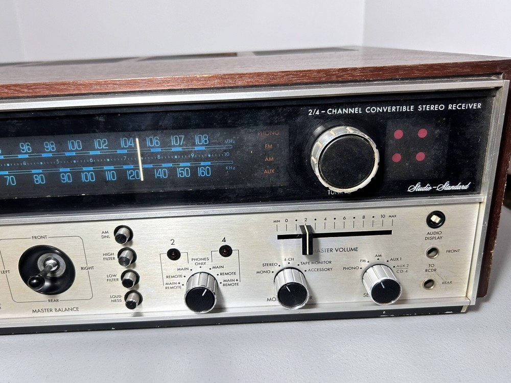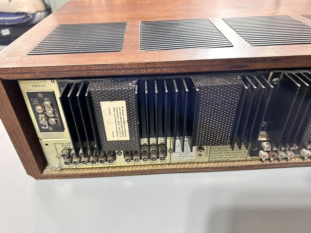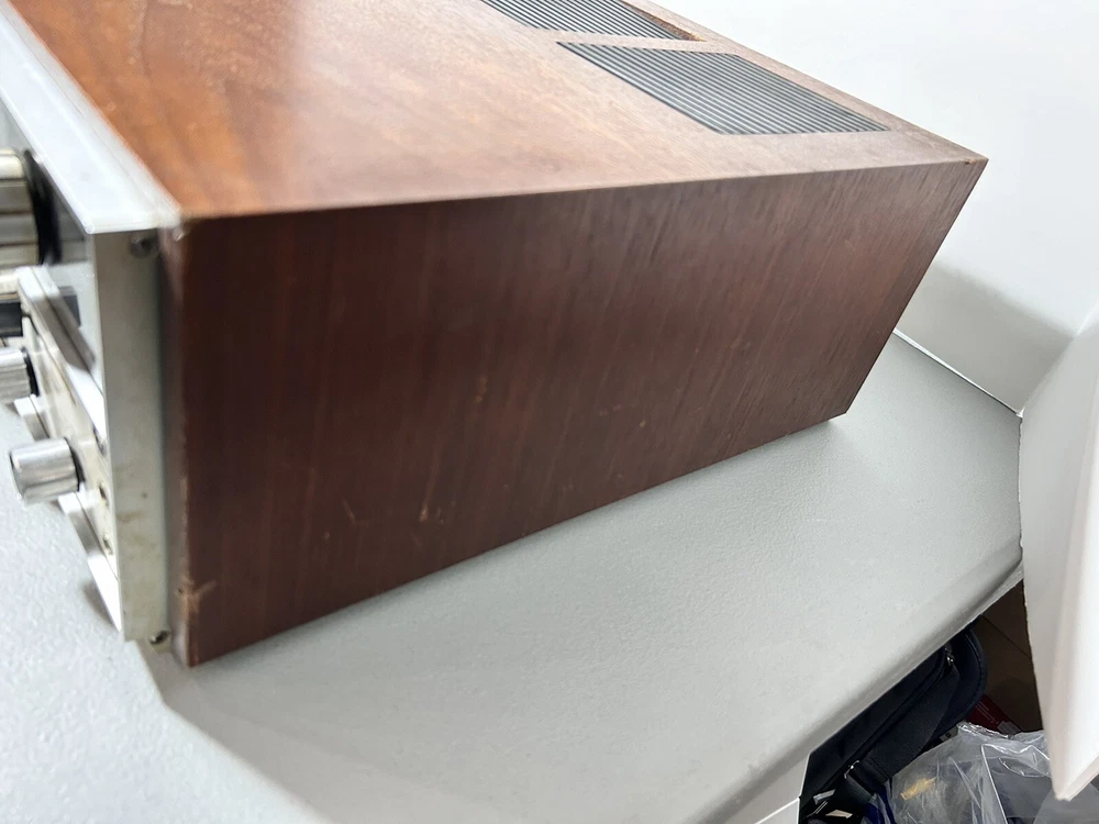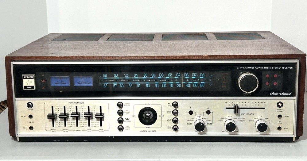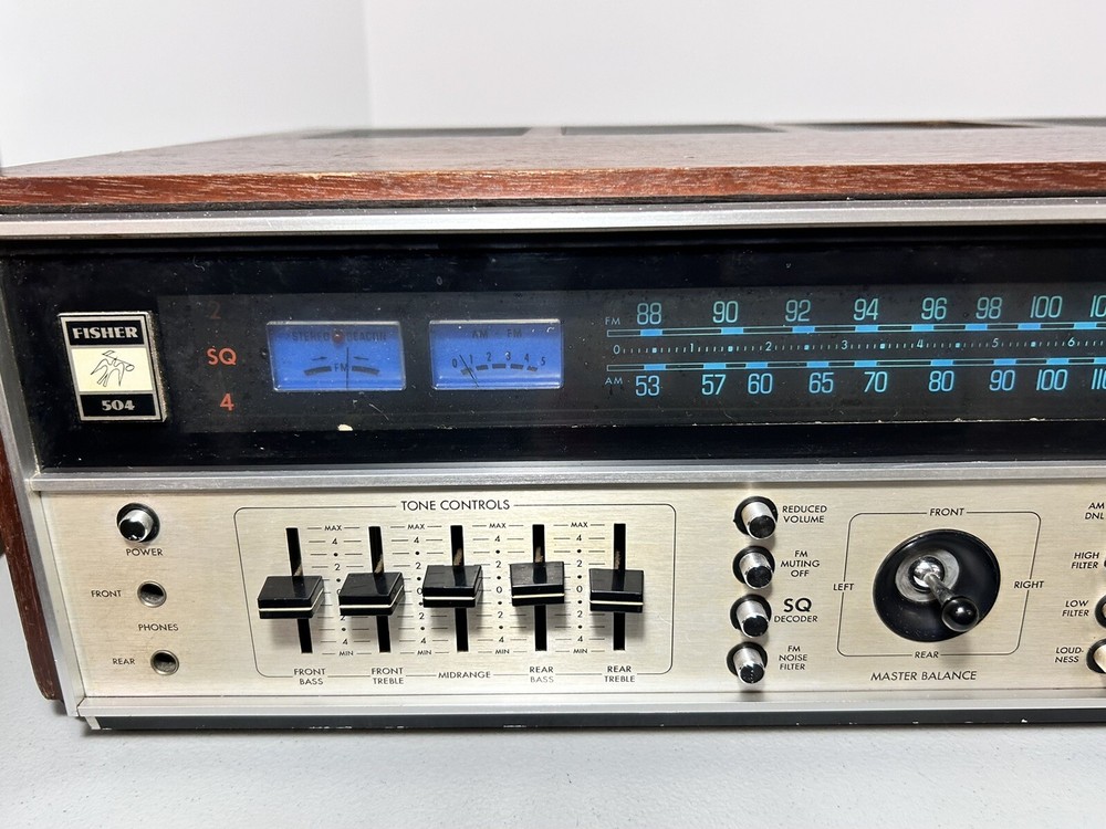 Vintage Fisher 504 Wide-Surround 2/4 Channel Stereo Receiver (110 Watts/channel) It has static when turning knobs so it needs to be cleaned. Turns on, and some of the display lights up, FM works and some of the knobs/buttons work but not sure about anything else. See pictures for condition. This Fisher 504 is a main receiver. It's a powerful unit that can bother the whole neighborhood when paired with good, capable speakers. For a turntable, you will need to make sure the ground is connected to the receiver for the best results. The AUX input can be used for a Bluetooth adapter. It's a big, heavy receiver. Measures 21.5" x 17.5" x 6.5". Generally Manufacturer: Fisher Model: 504 Typ: Receiver Years of construction: 1972 - 1974 Made in: USA Color: silver, walnut casing Dimensions (WxHxD): 545 x 175 x 430 mm Weight: 19.5kg New price approx.: $599.95 in 1973 connections Number of inputs: Phono: 2,7 mV / 47 kOhm, 100 mV max. Aux: 200 mV / 40 kOhm Tape Play 1, 2: 300 mV / 40 kOhm Tape Play DIN 1, 2: Antenna UKW / MW: 75 Ohm / 300 Ohm Number of exits: Tape Rec 1, 2: 300 mV Tape Rec DIN 1, 2: 40 mV Headphones: V + H separately 4 pairs of speakers Technical data amplifier Continuous power quadro operation: 8 Ohm: 4 Ohm: 4x 50 W Dynamic performance 8 Ohm: 4 Ohm: 4x 80 W Continuous power stereo operation: 8 Ohm: 2x 110 W 4 Ohm: Dynamic performance 8 Ohm: 2x 180 W 4 Ohm: Total harmonic distortion: < 0.5% (at rated power) Damping factor: 30 Frequency response: 20 - 20,000 Hz, ± 1 dB Signal-to-noise ratio: Phono: 60 dB Hochpegel: 80 dB Tone control: Bass: ± 15 dB at 50 Hz Midrange: ±8 dB at 1.5 kHz Treble: ± 12 dB at 10 kHz Loudness: + 9 dB at 100 Hz, + 4 dB at 10 kHz High Filter: - 5 dB at 100 Hz Low Filter (Subsonic): - 4 dB at 10 kHz Mute: Tuner Reception: FM, MW Frequencies: Frequency: 88 - 108 MHz MW: 530 - 1'605 kHz Frequency response: 30 - 15,000 Hz Input sensitivity: Voltage: 1.8 µV MW: 10 µV Klirrfaktor: UKW: 0.2% (Mono), 0.3% (Stereo) MW: 0,3% Signal-to-noise ratio: UKW: 70 dB MW: 58 dB Channel separation: 38 dB Selectivity: UKW: 60 dB MW: 50 dB Simultaneous wave selection: UKW: 1,2 dB Secondary wave selection: 80 dB Image frequency attenuation: UKW: 65 dB MW: 70 dB IF attenuation: UKW: 100 dB MW: 90 dB AM rejection: 55dB Special equipment 2-/4-Kanal Receiver SQ-Matrix Decoder Joystick for speaker tuning If you have any questions, please let us know. Smoke-free environment. The item color may not be exactly as it appears in the photos due to lighting and the device screen coloring. Photos are part of the description. We ship all items within two business days after payment. We do not ship on holidays or weekends. Please see other items we sell. We strive to earn positive 5-star feedback for every item. If you are happy with your purchase, please take a moment to leave a positive 5-star feedback. If you have any issues with your purchase, please contact us directly using eBay’s message service so we can resolve the issue to earn your positive 5-star feedback. We accept an item back within 30 days of the original purchase date with a full refund less shipping. All returns must come back in the same condition they were shipped out. To qualify for full refund please be mindful to rewrap in original packaging for safe arrival back to us.