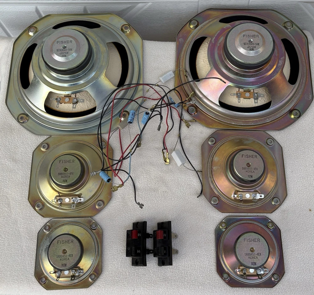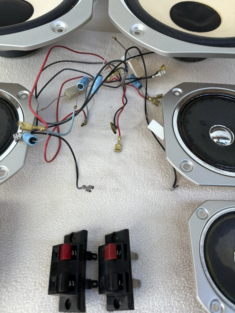 You get everything pictured. Just Removed from boxes. Great condition for age. See pics 2 subs 2 Mids 2 Tweeters Wires and back connection plugs....