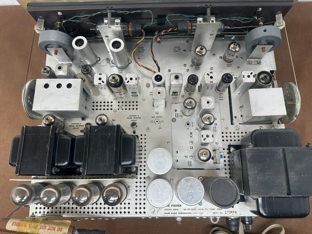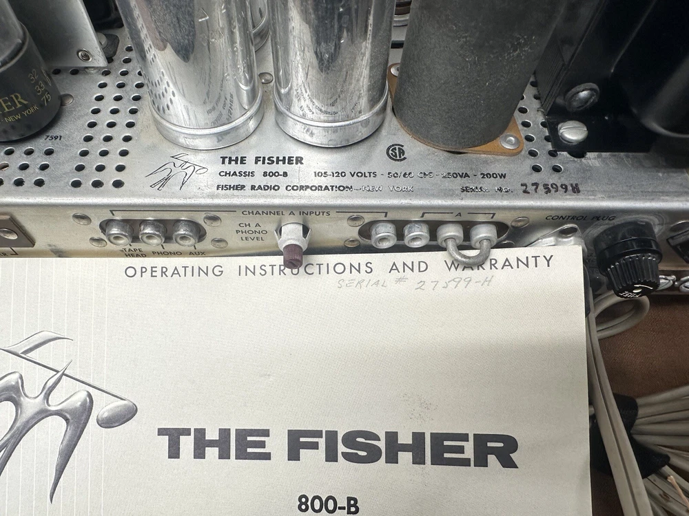 Experience the nostalgia of classic audio with the Fisher 800-B Stereo Receiver, a testament to timeless design and quality craftsmanship. This vintage piece, proudly manufactured in the United States, boasts an aesthetic that seamlessly blends into any décor, while its robust build speaks to the durability synonymous with the Fisher brand. The Fisher 800-B model is an original collector's item that has been carefully preserved, ensuring all original parts are intact. Its rich sound synonymous with the era echoes through its every note, making it not just a listening experience but a piece of audio history. Embrace the charm of vintage audio with this remarkable receiver. Please zoom in to inspect all pictures closely for it's cosmetic condition. -This specific unit is near mint condition, it is barely used and still have all original parts -All functions have been tested by a vintage audio technician and everything is working perfectly. -This unit will be professionally packed & delivered to your address by FedEx. -Local Pickup is also accepted in Westminster, CA 92683 -Please feel free to contact me if you have any questions. Thank you for taking a look at my listing!