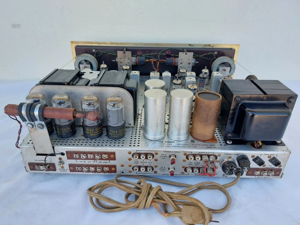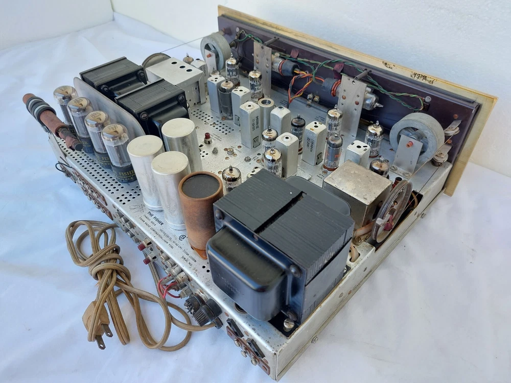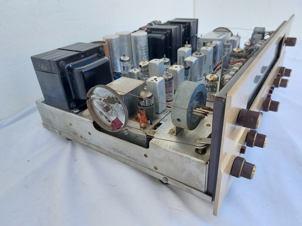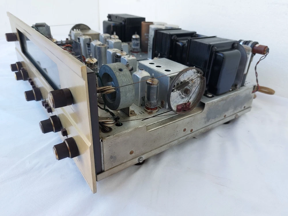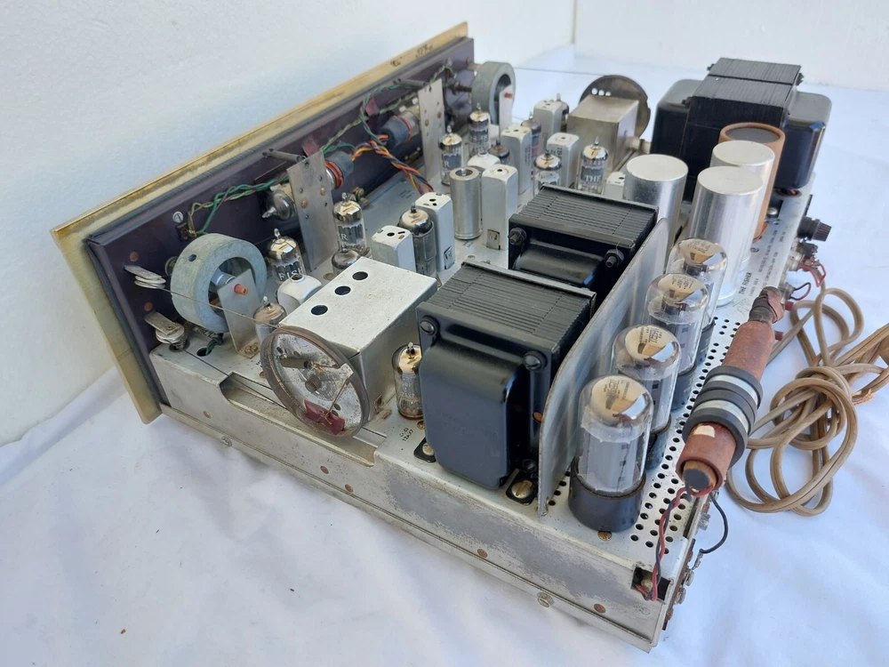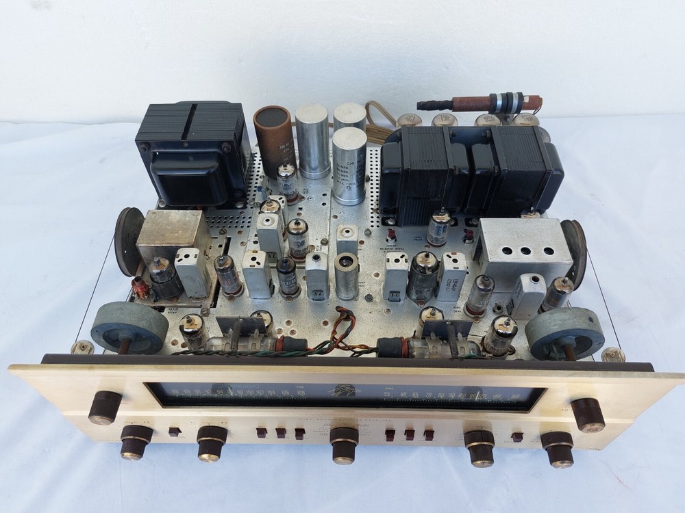 Unit just has stains and wear due to age. No big scratches or damage. All parts inside are original - have not been modified or serviced. Please use zoom to inspect all pictures closely before purchasing. Has been thoroughly tested by a vintage audio technician and everything is working well. Sound is clear, powerful, and evenly balanced. All lights also work properly. Will be packed very securely for safe delivery. I have shipped many heavy vintage audio pieces without incident. Thank you for viewing!