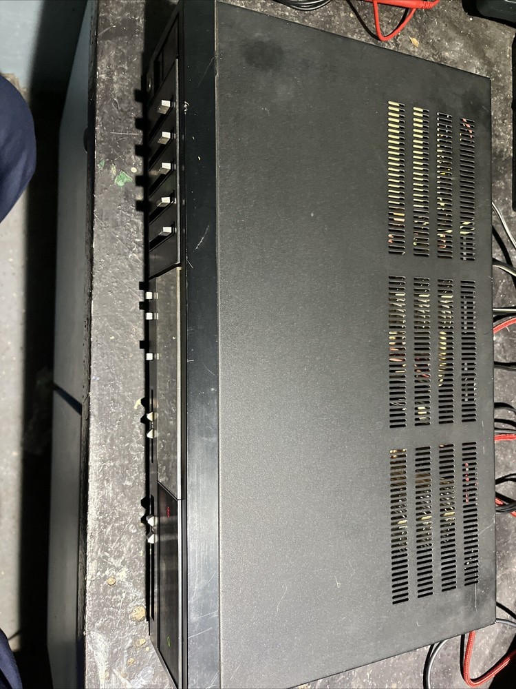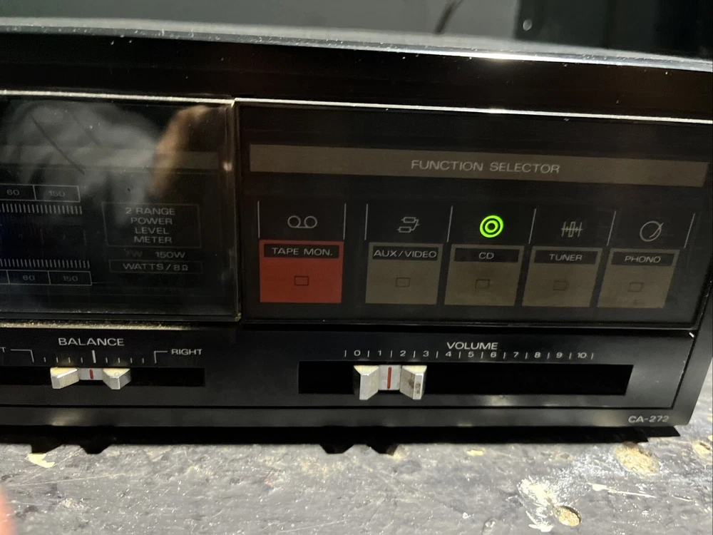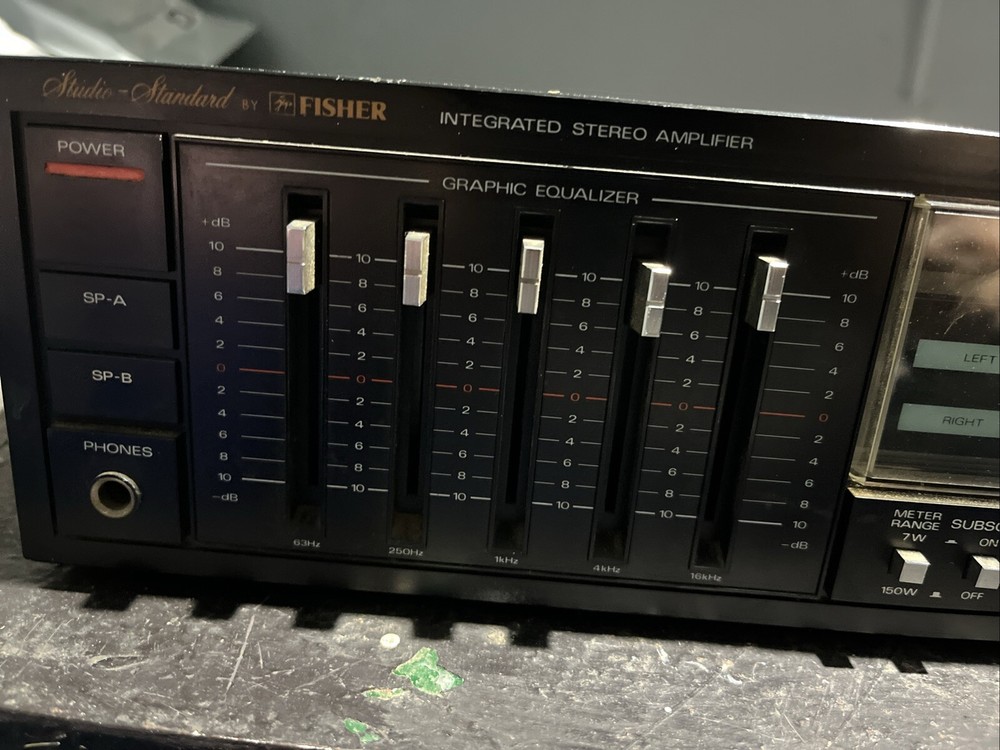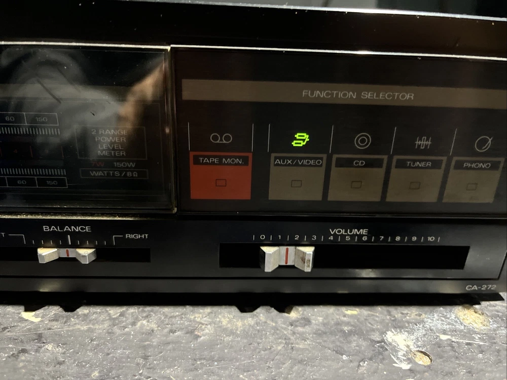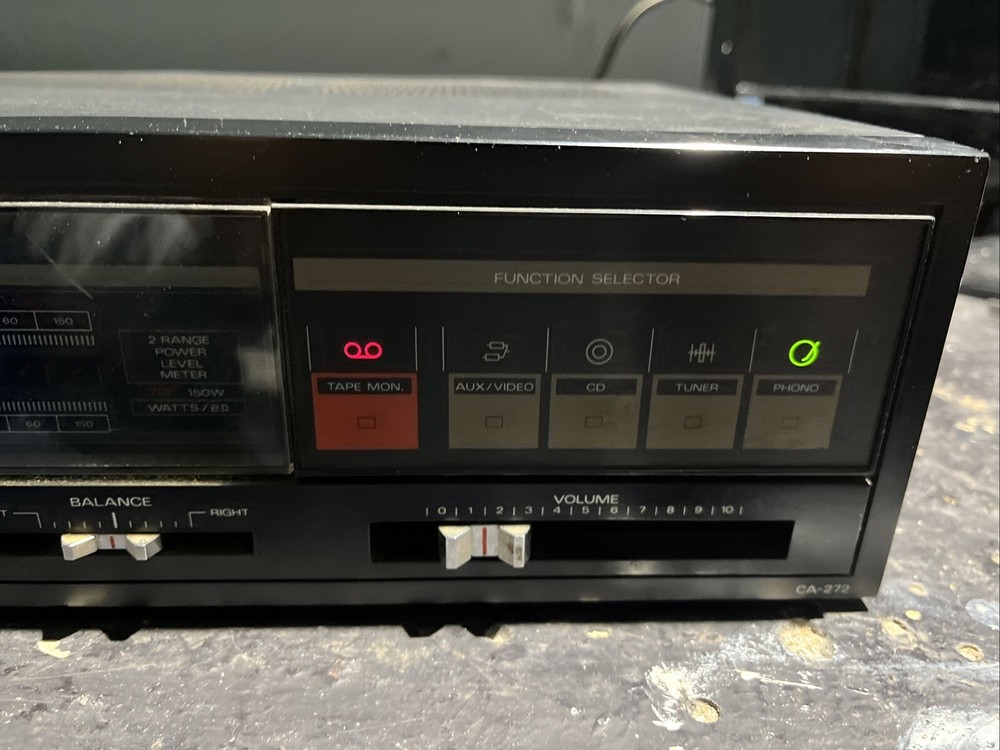 This vintage Fisher CA-272 stereo amplifier, made in the 1980s, is a true gem for any audiophile. With its classic design and sturdy construction, this integrated amplifier is sure to bring your vintage audio collection to life. The Fisher brand is known for its high-quality sound and this model, in particular, is a favorite among audiophiles worldwide. The CA-272 boasts a powerful 2x 70W output and a sleek design that will complement any decor. Whether you're a collector or a music lover, this vintage Fisher amplifier is a must-have for any audio setup. Part of the wire has black tape wrapped around it.
