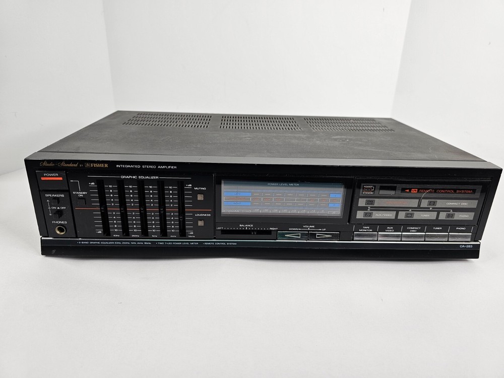 Vintage Fisher CA-283 Integrated Stereo Amplifier - For Parts or Repair READ Unit is pre-owned and shows wear. It is being sold for parts or repair. Unit turns on and appears to work, however, we do not have the additional equipment required to fully test it. We acquired the unit from a repair shop closing and since there are no housing screws, I would make the assumption that there is an issue with it (though I don't know what). Please see photos.