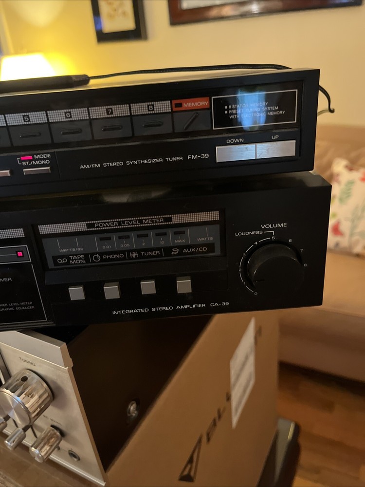 This vintage Fisher CA-39 stereo integrated amplifier and synthesizer tuner FM-39 is a rare find for any audiophile. Made in Japan, this amplifier and tuner combo is a true gem for those who appreciate vintage audio equipment. The brand Fisher is known for its high-quality sound and this model, in particular, is a favorite among vintage audio enthusiasts. With its sleek design and superior sound quality, this amplifier and tuner combo is perfect for any home audio setup. The model Fisher CA-39 is a must-have for collectors and those who value vintage audio equipment. Don't miss out on the opportunity to add this rare find to your collection. Tested … amp and tuner both work. Mp says it puts out 250 watts