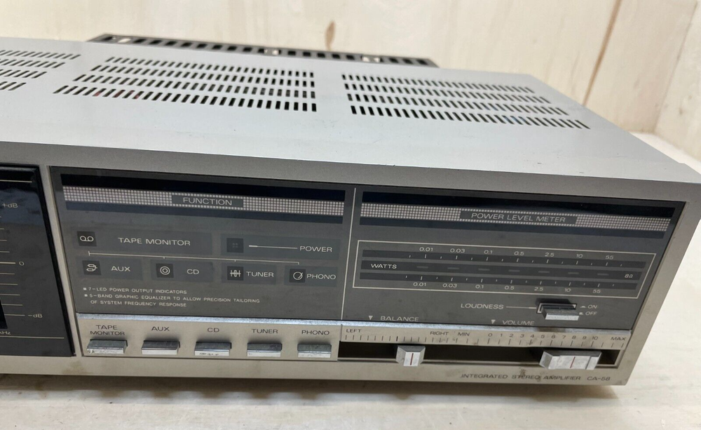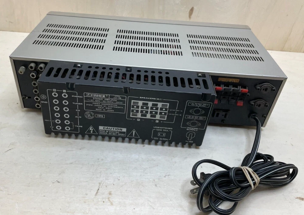 Untitled Document Store About Us Feedback Vintage Fisher CA-58 Stereo Integrated Amplifier Silver Corded R/L Stereo You are looking at a Vintage Fisher CA-58 Stereo Integrated Amplifier Silver Corded R/L Stereo Fisher Brand Reputation: Fisher was a well-regarded brand known for their audio equipment, particularly in the mid-20th century (mention this if you find positive reviews online about the CA-58's sound quality). Integrated Amplifier Design: Combines a preamplifier and power amplifier in one unit, offering a simplified setup for enthusiasts (briefly explain what a preamp and power amplifier do if the listing doesn't mention it). Features (to be confirmed in the listing or online research): Wattage Output: This will determine the amplifier's power and its ability to drive speakers. Input/Output Connections: Besides the mentioned R/L stereo RCA jacks, there might be other input options for connecting turntables, CD players, or tape decks. Speaker Connections: These will likely be speaker wire terminals. Great Condition. See pictures for condition. Thanks for looking. Check out our other Auctions! RETURNS We value our customers, and the opportunity to help provide you with your everyday needs. Our goal is to have quality customer service and provide quality products. We stand behind what we sell. We do offer return services consistent with our return policy. The return policy is as stated for each item in such condition: Brand New Items: Offer 7 days Money Back Guarantee for item defective upon delivery. New (Other) Items: Offer 7 days Money Back Guarantee for item defective upon delivery. Pre-Owned Items: We do not accept Returns for these items unless otherwise noted. Fair/Poor Condition: We do not accept Returns on these items as they are sold AS-IS. As this is our standard Return/Refund policy, we do stand behind our products. Some items may be different from this policy. They will be indicated in the auction if this is the case. Our Goal is 100% Feedback, so if you do receive an item that you are not happy with, please contact us before leaving feedback and we do what we can to make it right with you. SHIPPING We strive for the best shipping practices and experience. We ship based on a flat shipping price to an average location within the United States. We do not offer shipping outside of the continental US due to this shipping average. The only way in which we ship beyond that point is if Global Shipping options are selected on the individual item. FAST STANDARD SHIPPING Delivery typically in 1-5 business days EXPEDITED SHIPPING Expected Shipping within 1-3 business days. (Inquire to Expedited Shipping Charges) HANDLING TIMES As per our shipping in handling terms we adhere to a 1-day handling period as a policy. If an item is purchased early enough during the business day, then prompt shipping may be possible. If past standard midday shipping, then the following day the item will be given to the shipping courier. We resolve to use the most economical means of shipping depending on the size and weight of the package. Sometimes this means using USPS, UPS, and FedEx for deliveries. On rare occasions an item may be drop shipped and the companies courier may be used. In the event that a package is damaged, it is required to contact us within 24 hours of the package delivered. We will then proceed to work with the shipping company to recoup any damages incurred on behalf of the buyer. It is imperative to provide good pictures and description of the damage. PAYMENTS We accept PayPal and all of its payment options for secure and safe payments. Special financing available Select PayPal Credit at checkout to have the option to pay over time. Qualifying purchases could enjoy No Interest if paid in full in 6 months on purchases of $99 or more. Other offers may also be available. Interest will be charged to your account from the purchase date if the balance is not paid in full within 6 months. Minimum monthly payments are required. Subject to credit approval. See terms - opens in a new window or tab The PayPal Credit account is issued by Synchrony Bank. Free eBay Template from eCommercepreneurs