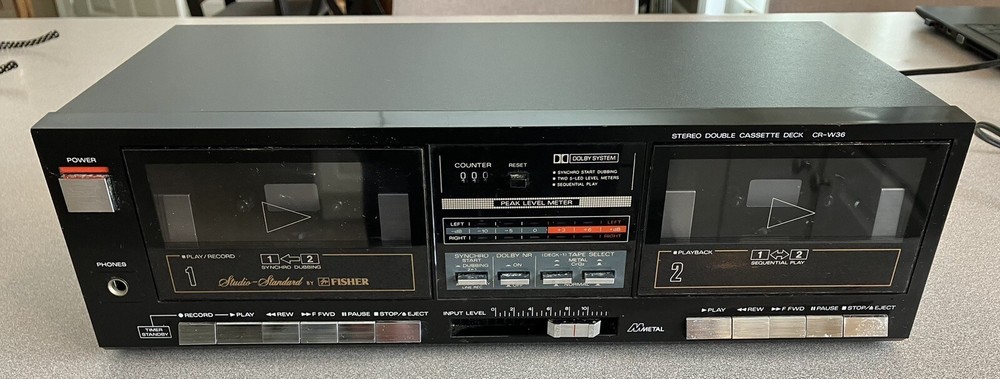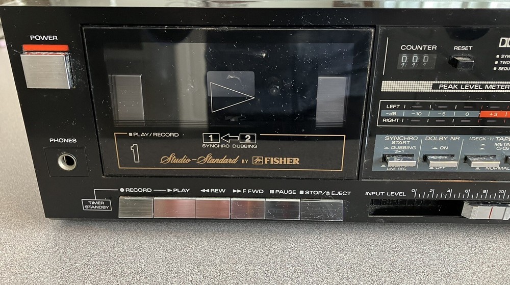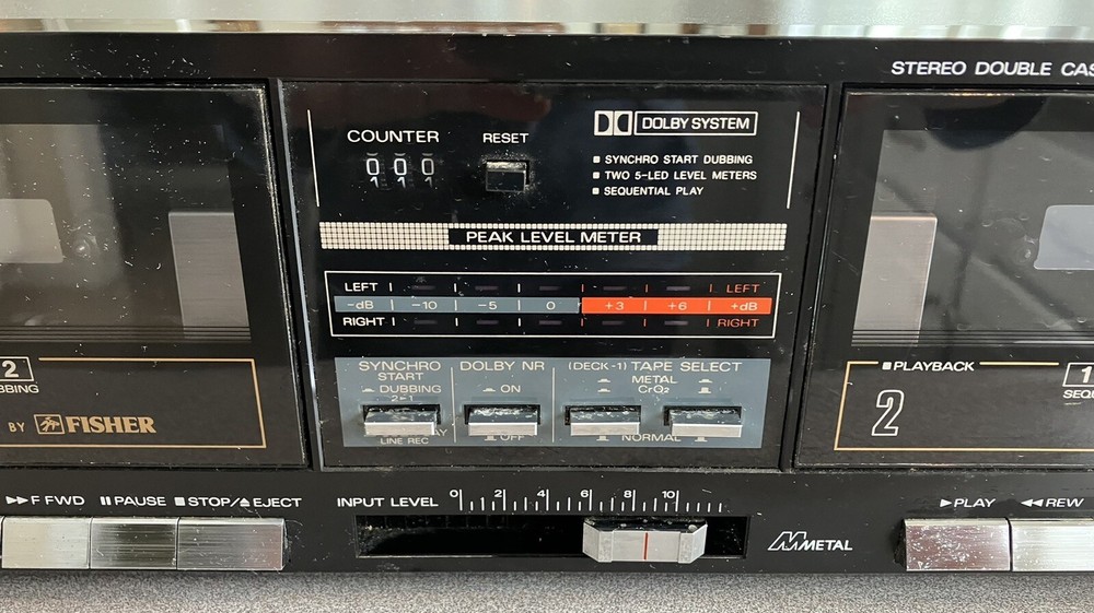 Fisher stereo dual cassette deck . Turns on and can hear the motor running. Don’t know anything about repairing this . Selling as is .