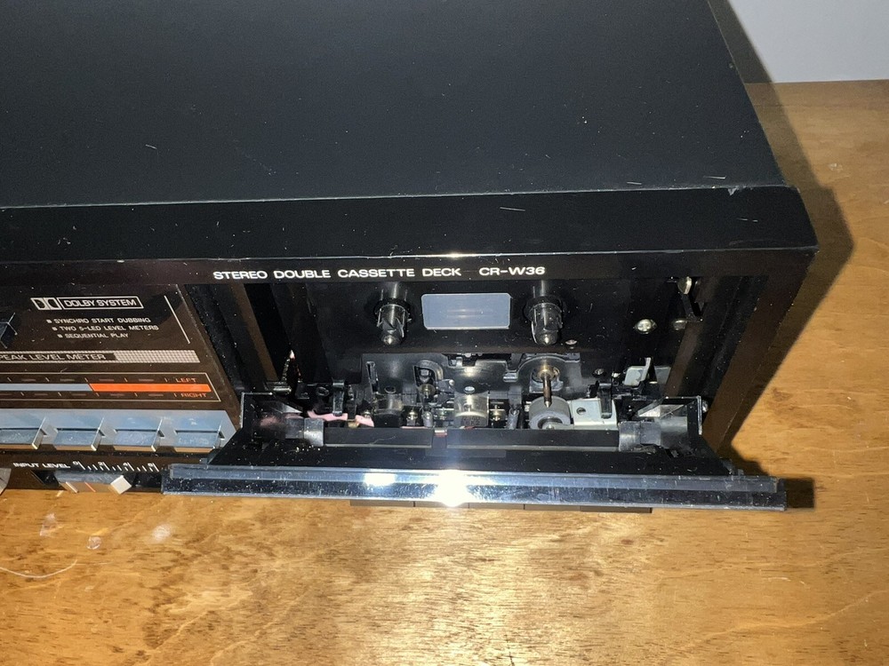 Does not work! Powers on but does not play any tapes and makes a noise. Left tape slot wont open. No repairs attempted, has sat for a long time. Please see photos! I ship with care! SOLD AS IS FOR PARTS OR REPAIR