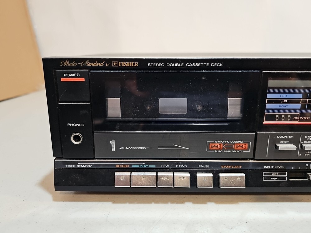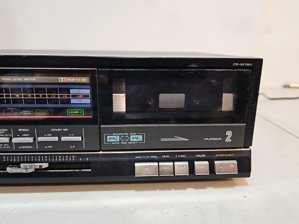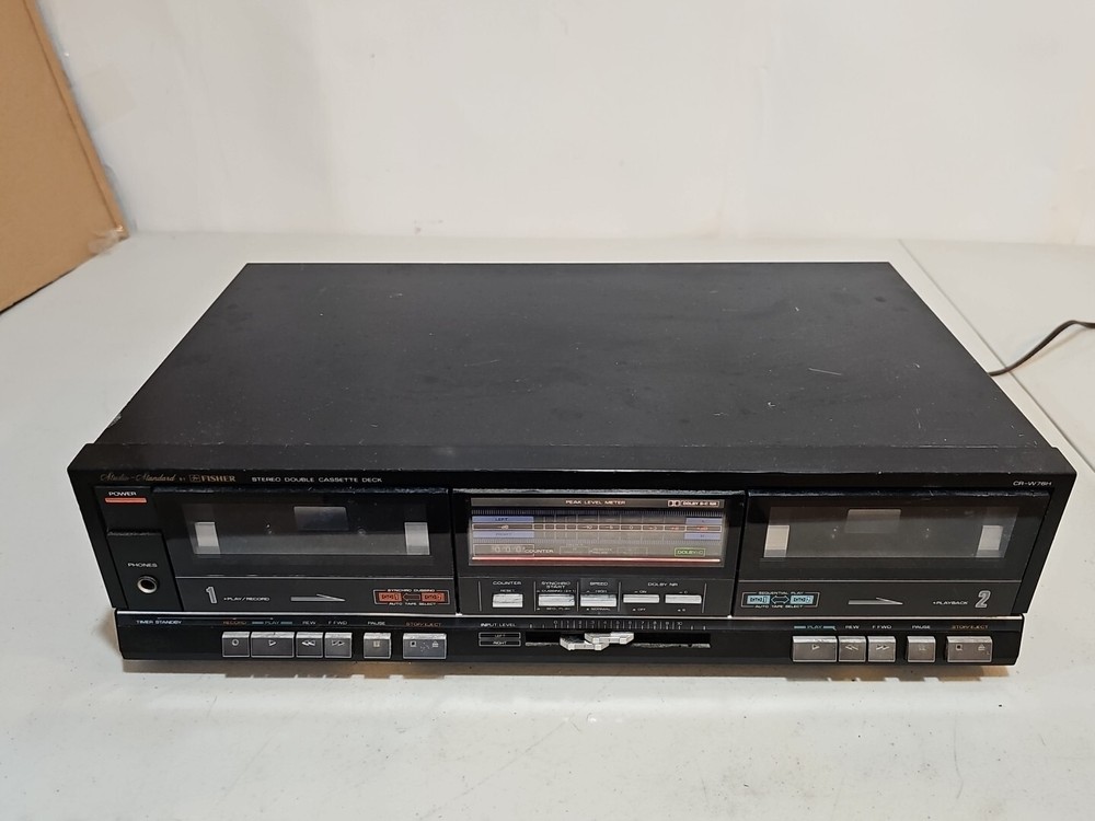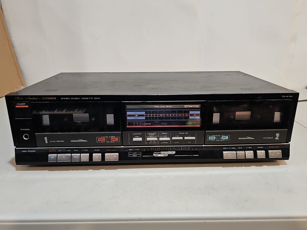 This vintage Fisher CR-W76H Stereo Double Cassette Deck Recorder Studio Powers On with no California Prop 65 Warning. Made in Japan, this unit is a one-of-a-kind find for vintage audio enthusiasts. With the ability to play and record on two cassette decks simultaneously, this recorder is perfect for studios and collectors alike. The unit powers up but doesn't seem to work correctly. Needs cleaning or repair. Being sold as is. Please check all my pictures and other listings for more rare and hard to find items. This item will be packaged and shipped securely.